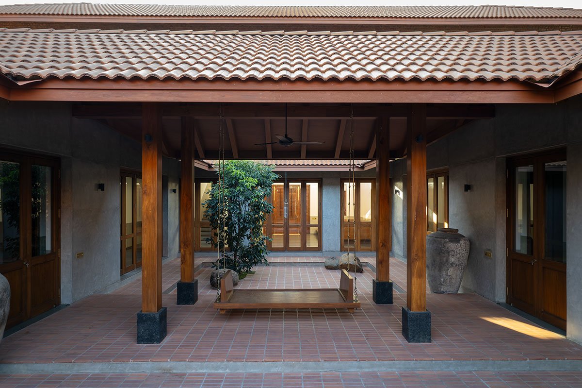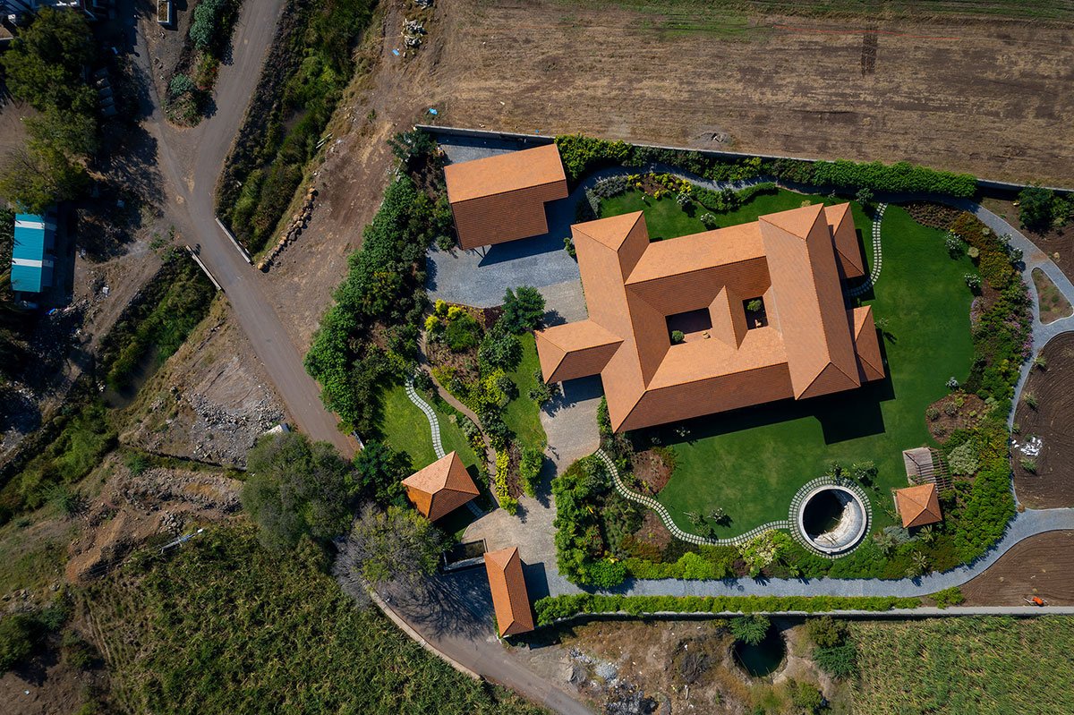 [Text as submitted by architect] The house with two courts is a weekend getaway, nested within the interior farmlands of a rural Indian village, seamlessly blending into the local architectural heritage, being true to its context.