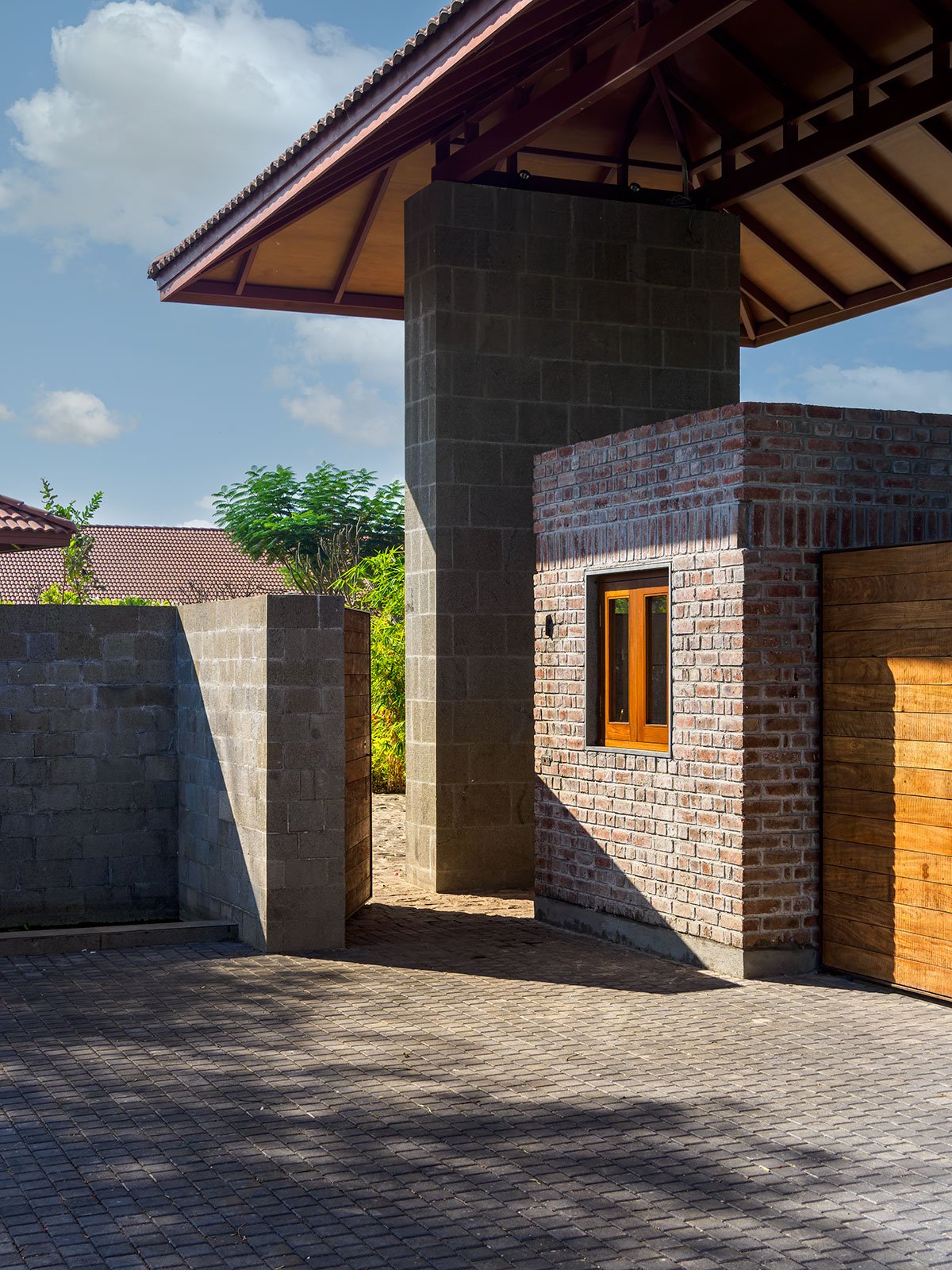 Excerpt: The House With Two Courts by Studio Mahajani + Mahajani is a weekend retreat nestled in a rural Indian village, blending seamlessly with its architectural heritage. The house features a vernacular design with stone and brick elements. Two courtyards blur indoor and outdoor boundaries, reflecting the rustic charm of rural living. The spatial planning revolves around these courtyards, offering tranquility and connection with the sky.