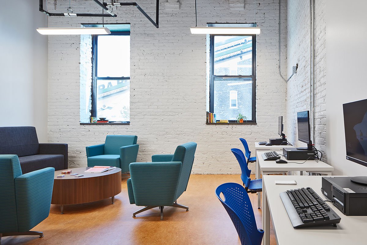 The second and third floors are the new administrative headquarters for The Night Ministry, where employees work together in open offices connected by a new central communicating stair. For the first time since its founding, all Night Ministry employees and volunteers can operate and meet under one roof, significantly improving organizational culture, connection, and quality of their services. Off-site teams such as the health outreach and street medicine teams now have space to touch-down and connect with other staff. Support spaces are designed to provide varying levels of privacy and gathering, including individual phone booths, small meeting rooms, workrooms and a large conference room that can hold all-staff and full board meetings.