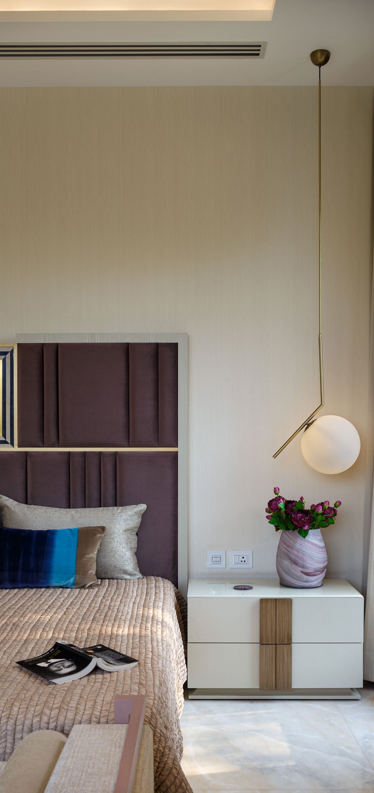 While designing for doctors, it was imperative to plan for healthy living and well-being. Considering the post-pandemic milieu, the orientation of all spaces towards the central courtyard facilitates visual connections while staying in the confines of one’s space. The massing of the Pastel House is created to divide the home into two zones; the ground and the first floor constitute the private family areas, whereas the guest zone is a distinct wing limited to the ground floor while being connected to family spaces on the same level. The spatial arrangement generates a subtle play of masses besides granting fluidity to the space, and is dotted by semi-open verandahs; resulting in a view that appears monumental, yet serene. To incorporate biophilia and bring the house closer to the greens, the blocks are arranged in a pin-wheel-like arrangement that entwines the spaces around a central courtyard. The produced arrangement offsets the house into an expanded perimeter, giving the house plentiful sunlight and proximity to the greens. In addition, large glass windows facilitate bringing in sunlight and green views to the residents.
