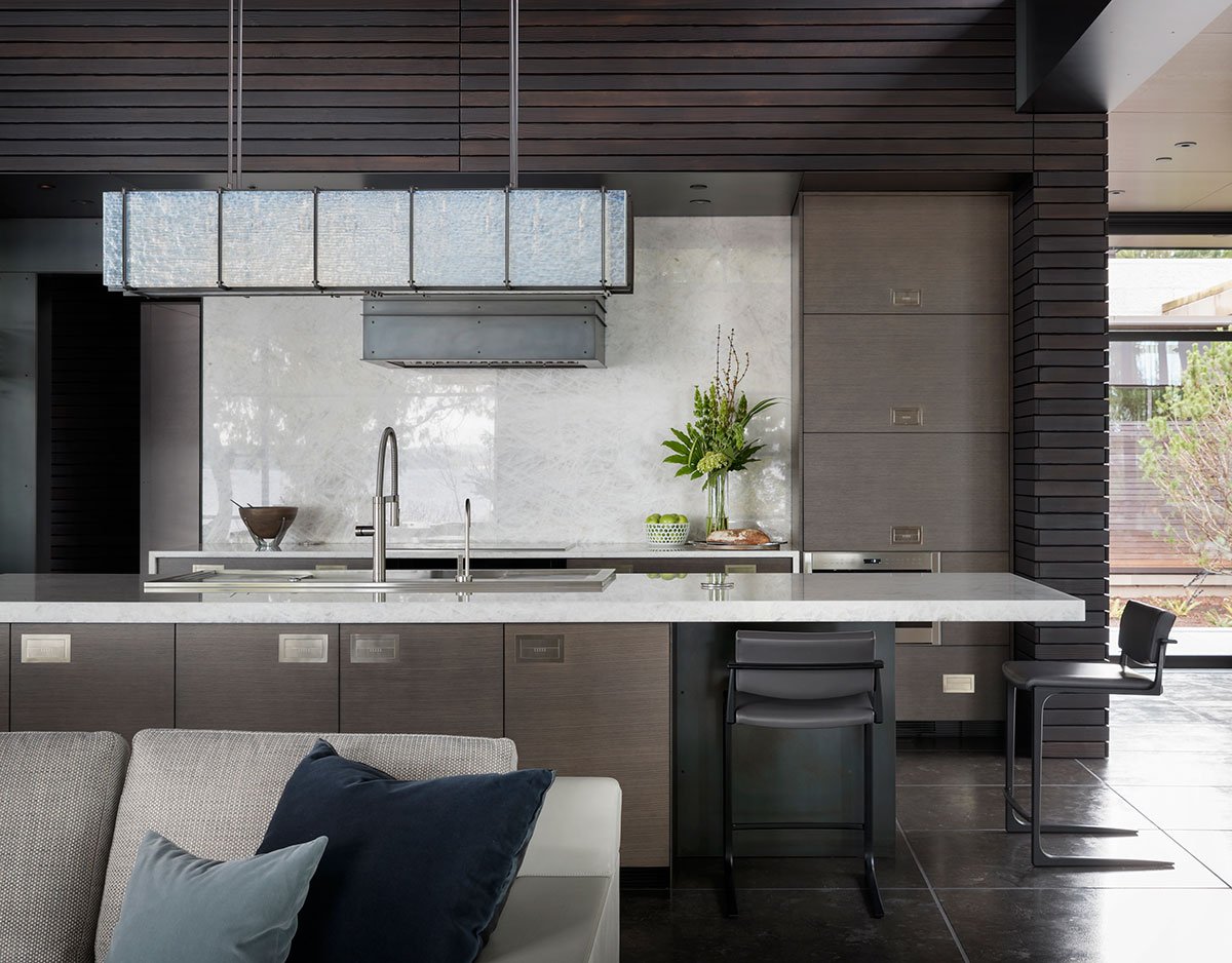 [Text as submitted by architect] A family home unites the demands of an extensive program with hierarchy, plasticity, natural light, views, blurring of interior/exterior space and a unique connection to the natural landscape. Building elements are organized into attached/detached pavilions based on program, hierarchy of structure and levels of privacy.