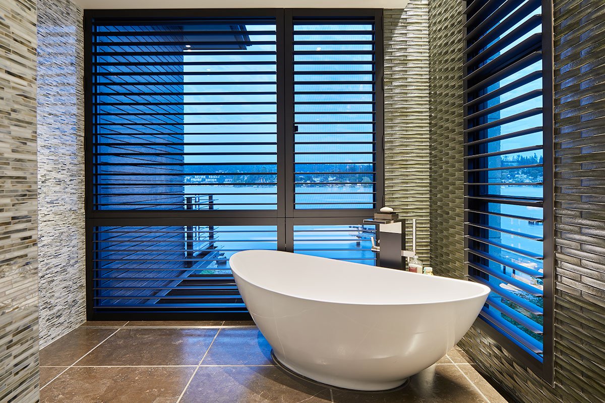 Low-E energy efficient double-pane thermally broken steel windows and doors made from 100% recycled materials with narrow sight lines allow for unobstructed views of the surrounding landscape, maximize daylighting, and provide passive ventilation. High R-value foamed-in-place insulation was utilized throughout the structure for an energy efficient envelope. Geothermal energy is captured to heat/cool the building through radiant floor heating/cooling. Ultraviolet water purification systems along with natural in-place filtering beds within the water features allow for the use of recirculated/recycled water and lake water can be utilized as auxiliary irrigation (as allowed by the local jurisdiction) to conserve fresh water.