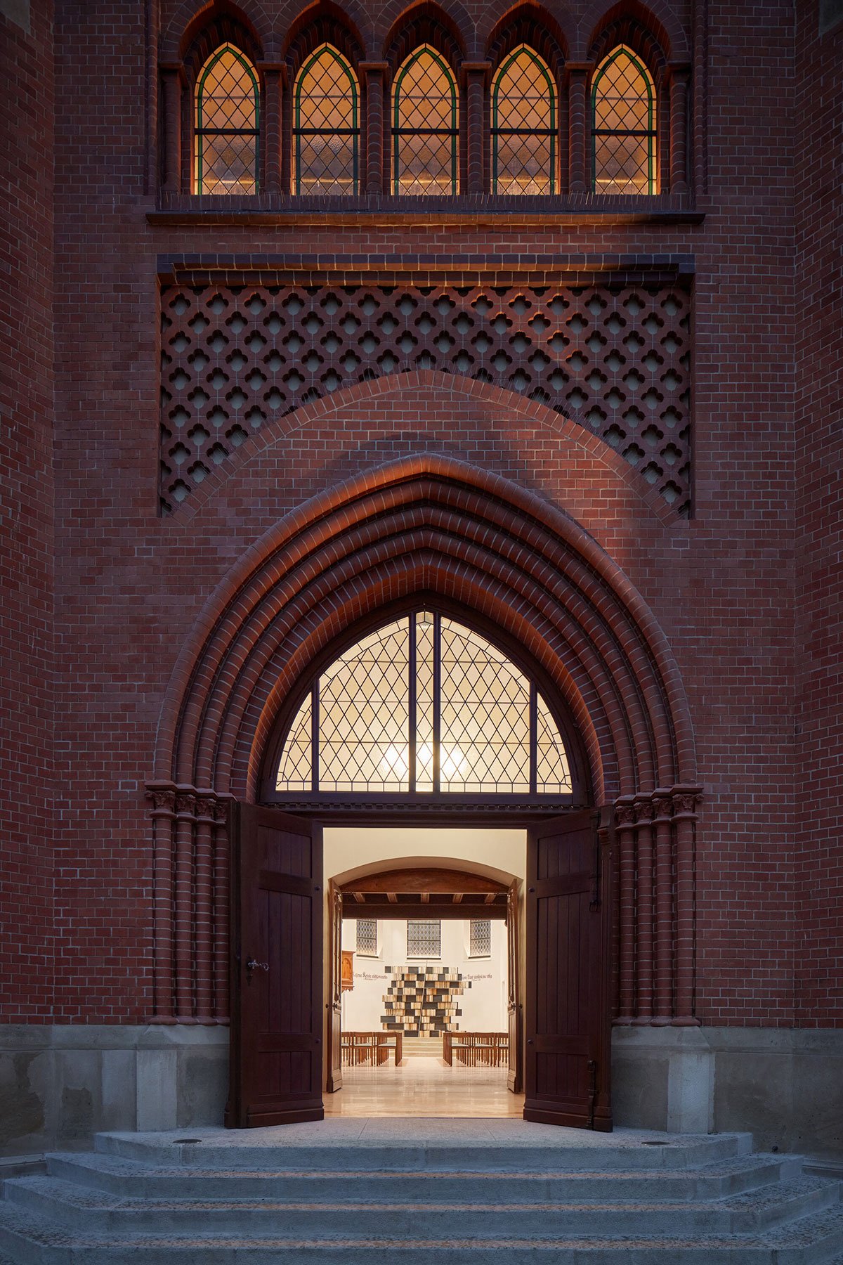 Excerpt: The Red Church Reconstruction & Refurbishment designed by Atelier-r combines the overall reconstruction of the historical building with the new cultural and social functions. The new building is placed right in between the church and the library directorate, linking the two of them together.