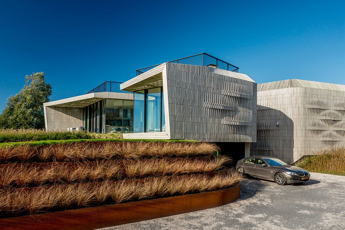 The W.I.N.D. House in the province of North-Holland incorporates both integrated sustainable solutions and home automation, whilst flexibility of spaces, the comprehensive assimilation of the surrounding landscape and a centrifugal circulation form the basis of the design.