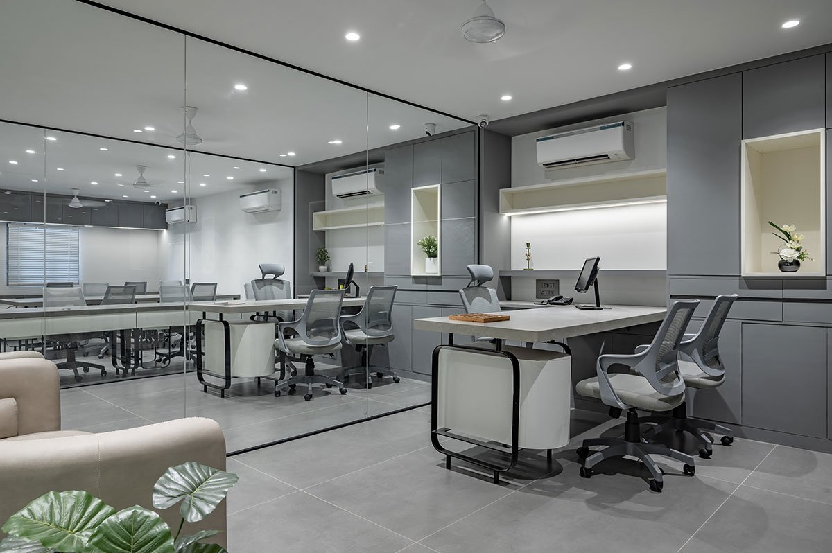 The repetition of the simple module gives the users a dynamic workspace that is also flexible for various spatial relationships. The colours used were maintained at a minimum as a response to an uplifting and serene work zone with soft shadows formed mostly by the poetic volume.