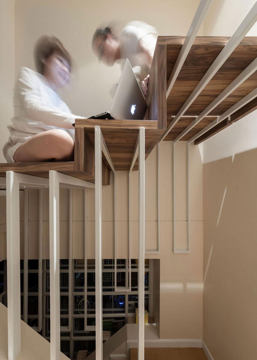 [Text as submitted by architect] A major pain point of staying in 64 sq.m. of duplex condominium unit, which is used for a home-studio for an animator and an artist, is that there is not enough space for dwelling.