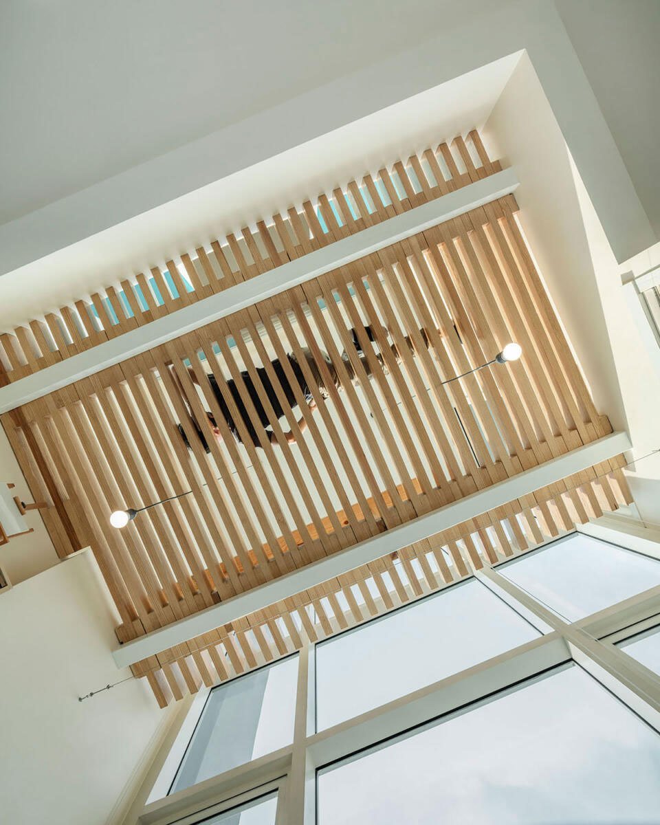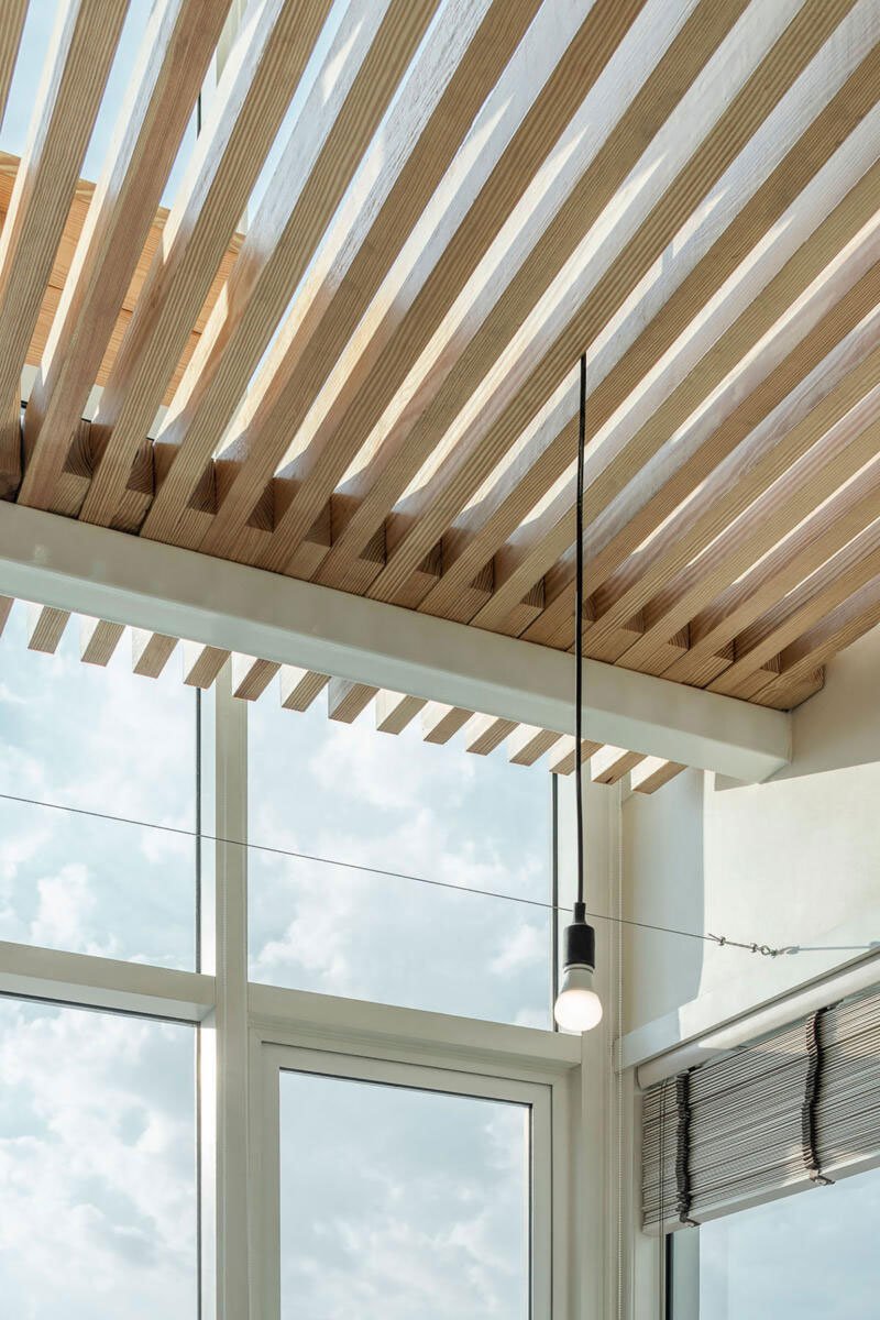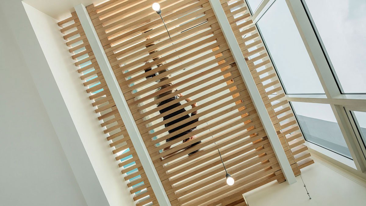 Moreover, a double-volume space of living area with a huge glass curtain wall, faces West. High temperature occurs all day long, since it allows direct sunlight to come inside.