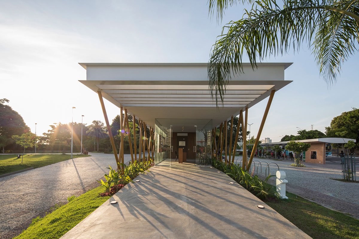 Views of the horizon and of the Negro River are scarce in the capital of the Amazon and could not be obstructed by the construction of this Information Center that prioritizes transparency and lightness. The columns that support the roof plan were randomly tilted so that roof plan appear as light as possible and that the columns confirm a strong and natural identity, related to the landscape of the park and the Amazon.
