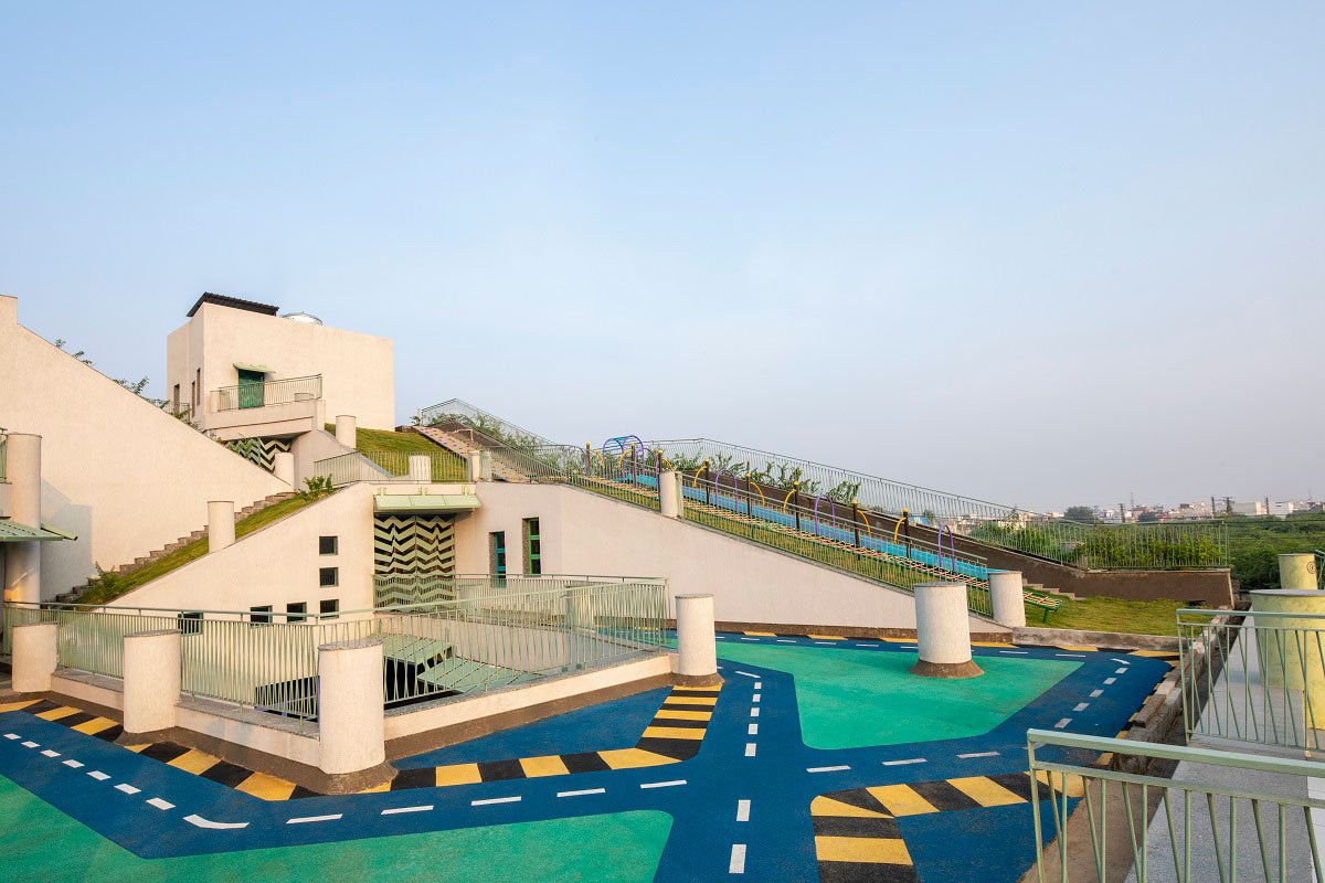 Walking down this vibrant street, an attractive purple entrance invites you into this space that dominates the purple color. The interior is modern, sleek, with clean lines and spaces. As soon as you enter the space the purple floor paves the entrance fountain which gives you a warm welcome. At the top of the fountain are plants that complete the look illuminated by the neon strip lights that are installed above. During the day, natural light rays fill the space and create a natural focus of the plants, while at night, it leaves the space bright.
