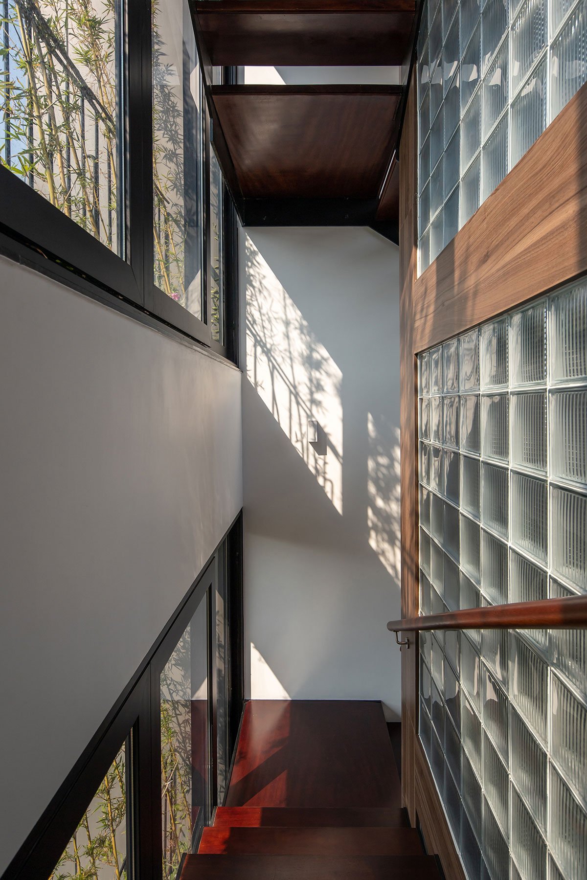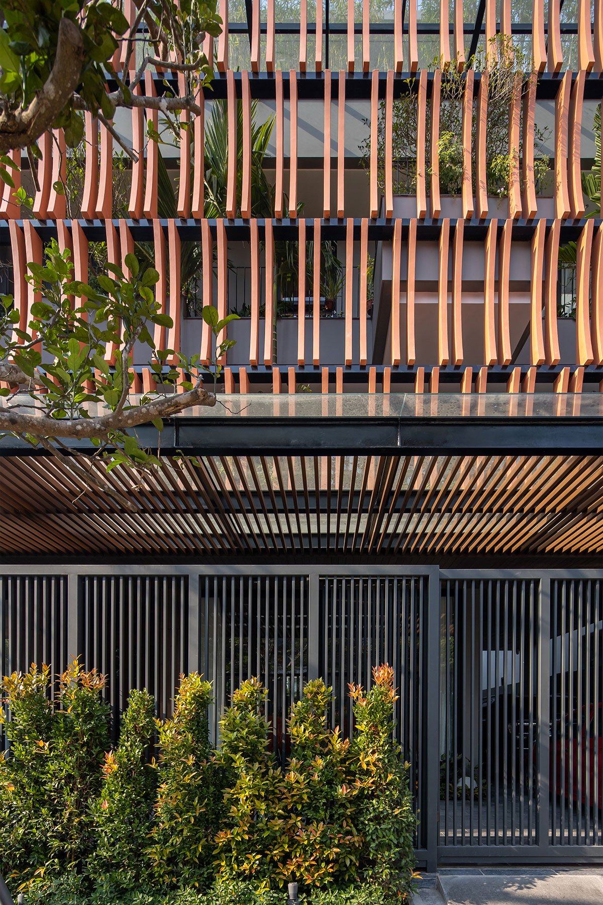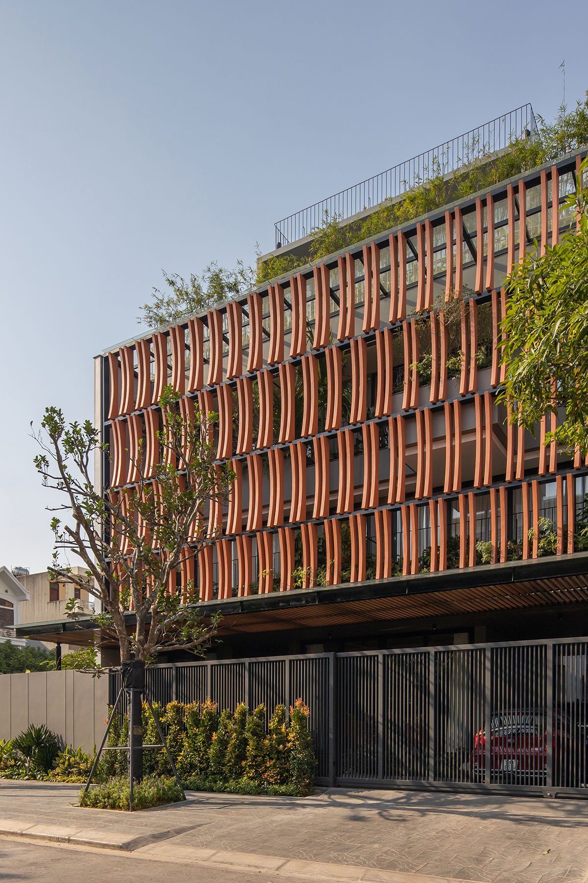 [Text as submitted by architect] ARO architects approached the needs of the house with 6 people and divided into 3 different generations. In Vietnam cities, the level of urbanization development is very high, in which Bac Giang City is an industrial-oriented city. Northern Vietnam with a tropical monsoon climate and high humidity, the air is very hot in the summer and very cold in the winter. So, with such problem requirements, the architects have come up with a natural approach to living programs for all spaces, solving the harsh sunlight in the summer and keeping the heat in the winter. The region will be the mainstay for people living in this place.