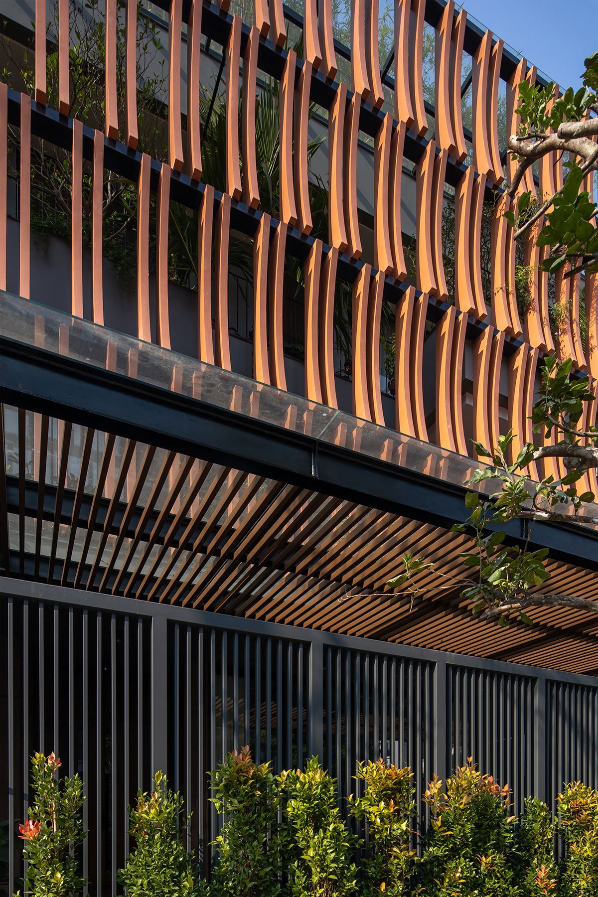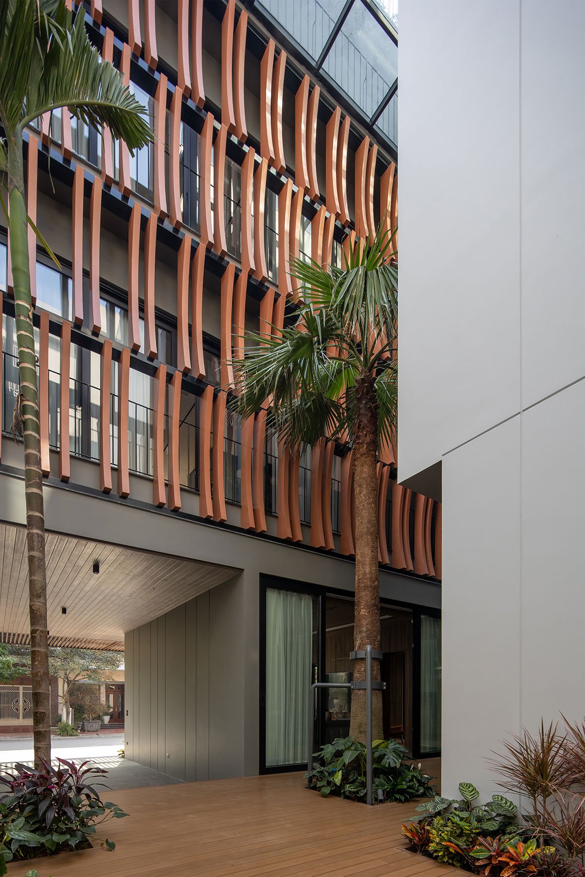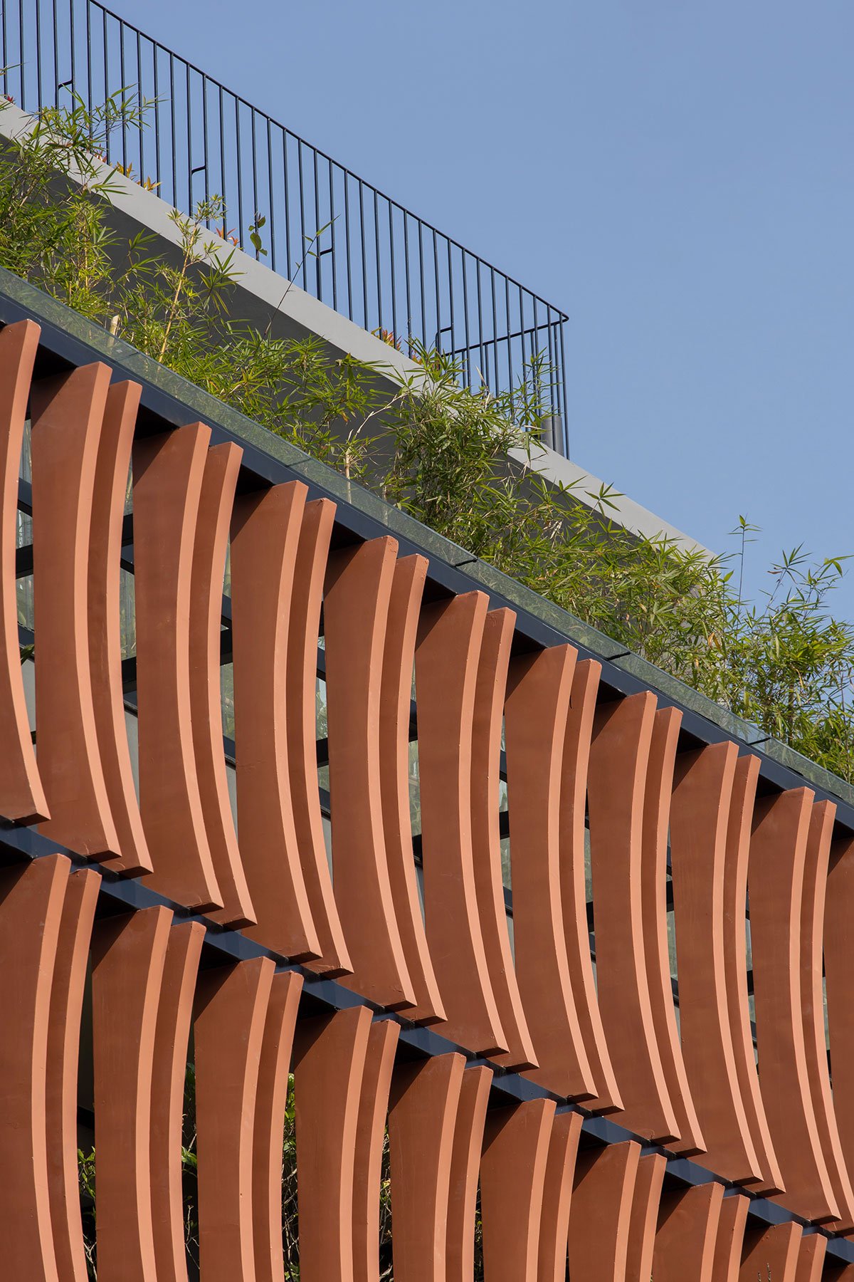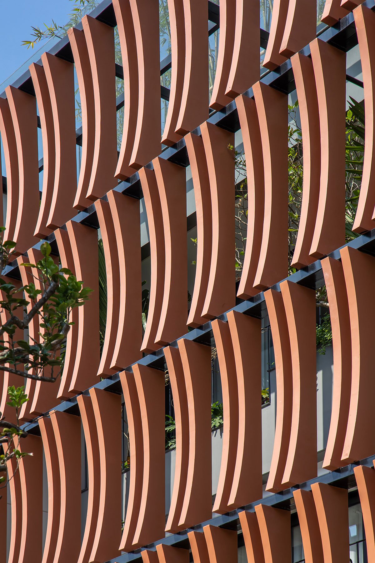 The architectural façade of the building creates a layer of blue color reminiscent of the traditional memories of the Vietnamese people, this layer of glazing will reduce the intensity of the sun’s light on the building, in addition, it will increase more privacy for the layers of living space inside. The garden layer between the blue layer and the living spaces is an intermediate space that partially regulates the microclimate and enhances the landscape, creating a sense of rest for the human mind. With the principle that the used spaces always have natural light and natural ventilation to ensure the cleanliness of the human operating environment.