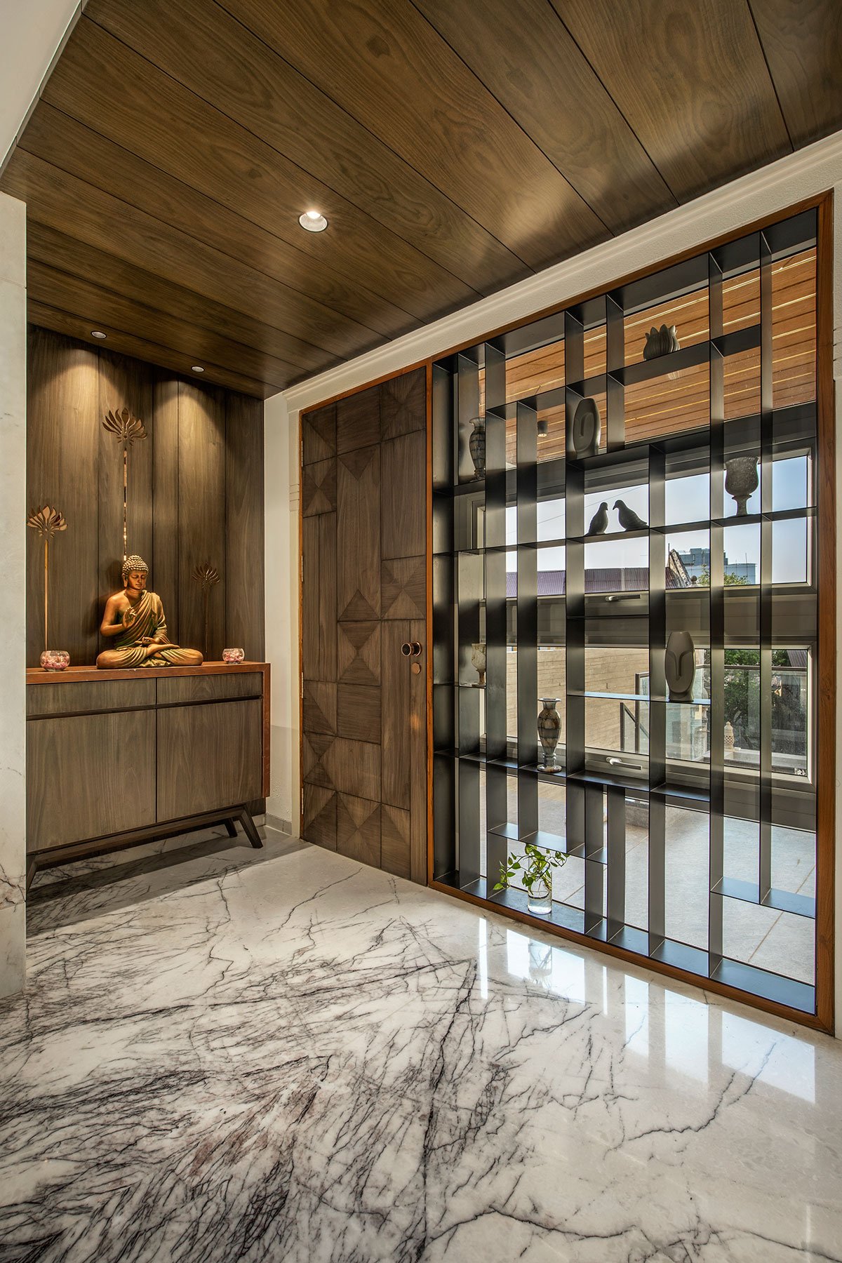 The brief: Conceived for a discerning NRI couple seeking to embrace the serenity of their roots during the golden chapter of their lives, this residence seamlessly weaves together traditional aesthetics with contemporary comforts.