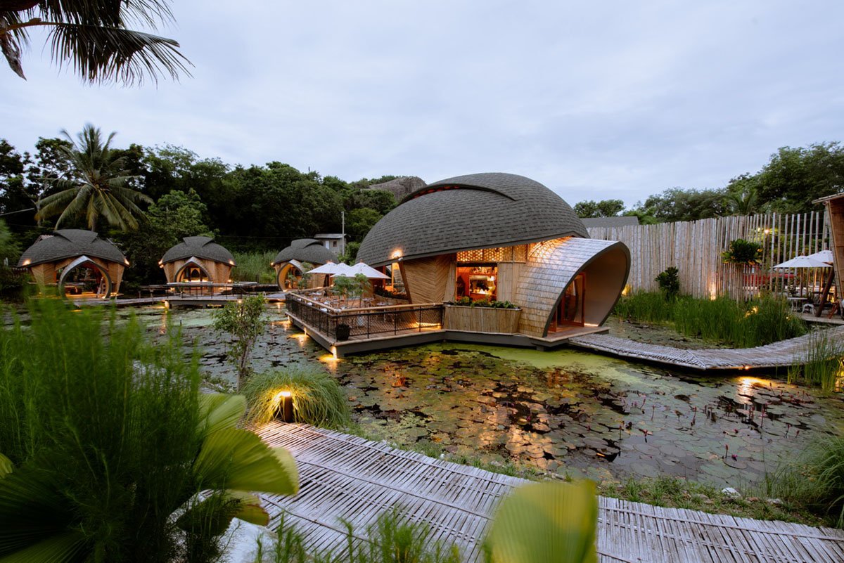 [Text as submitted by architect] The Turtle Bay project is located on the lush natural area of Hua-Hin, one of the most famous seaside area of THAILAND. The project is located on 1.7 Rai of land. The site is located near Khao Tao Reservoir and is also considered as one of the main tourists’ attractive place. The aim of Turtle Bay’s owner is to create new eco tourist destination, organic eatery, chef’s table, eco café, zero waste, workshop area, local artisan’s souvenir shop as well as homestay style lodging. During the site survey architect team found wild peacock feeding themselves at the site.