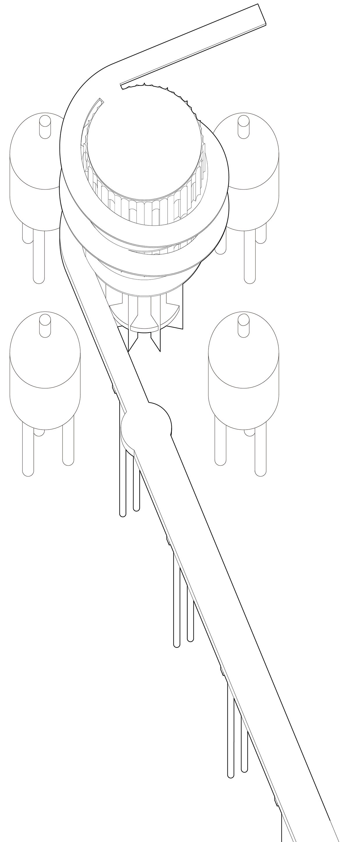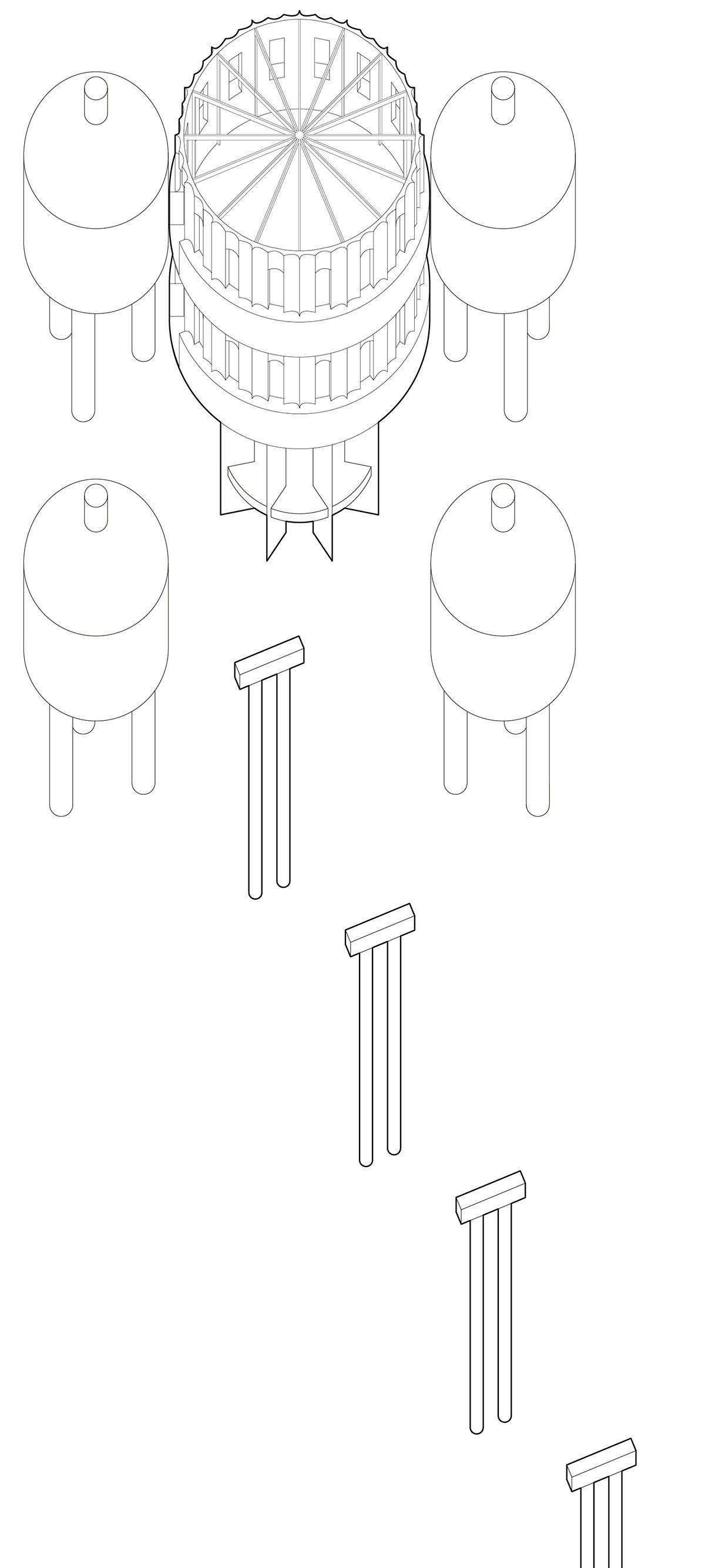 The default massing of an offshore monitoring station is a concrete box with stairs connecting all levels and a climate tower stands on top of the roof. Considering its distant location and wind load, the proposal shifts the cubic volume into a cylinder with a spiral gesture, while avoiding any decorative components.