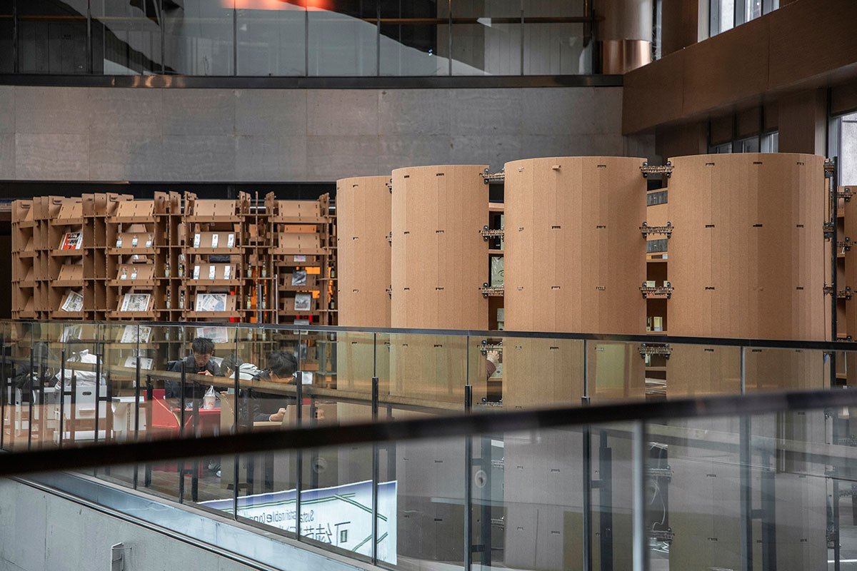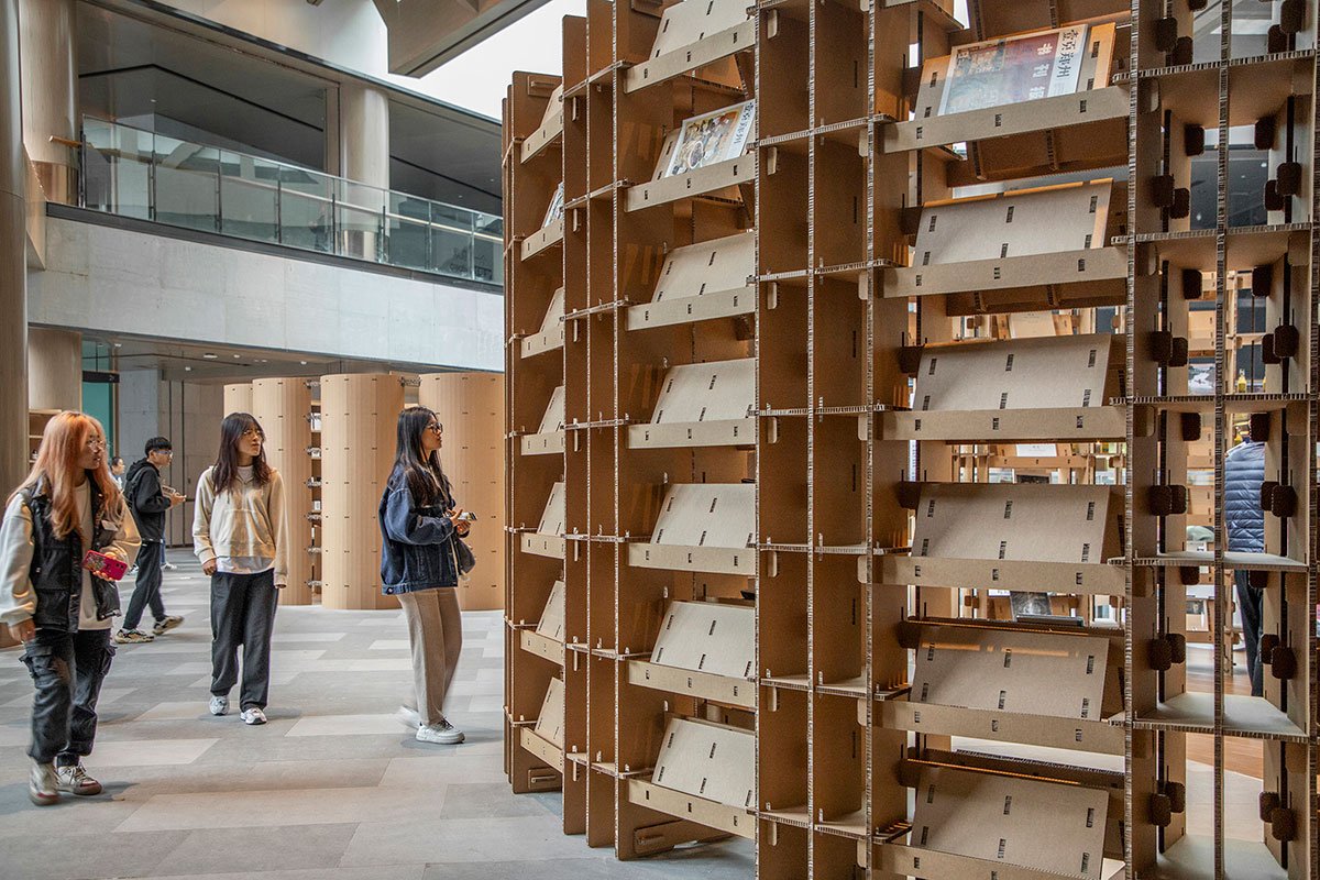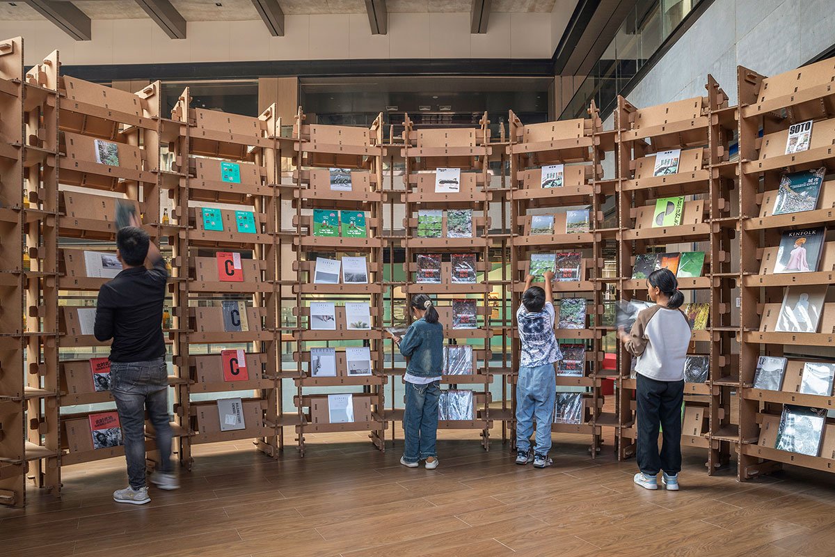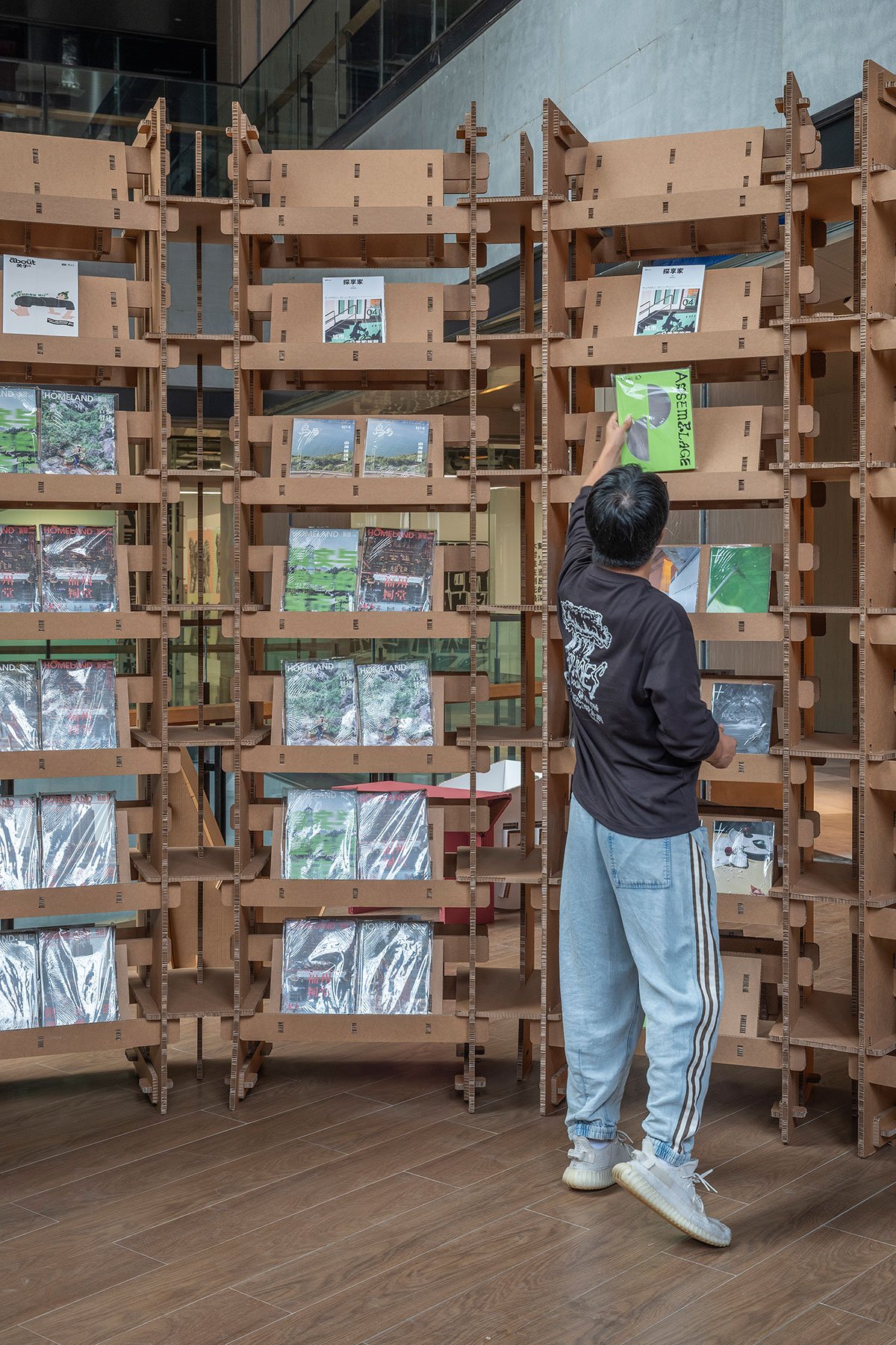 Due to the reorganization of space, the bookshelves in Cardboard-formed Exhibition Space 2.0 underwent a process of “disassembly – removing – moving back – and reassembling”, after which the stability and aesthetics still remain well. It is conceivable that the two “paper houses” can also be dismantled after the exhibition and can achieve sustainable reuse as well, like its predecessors.