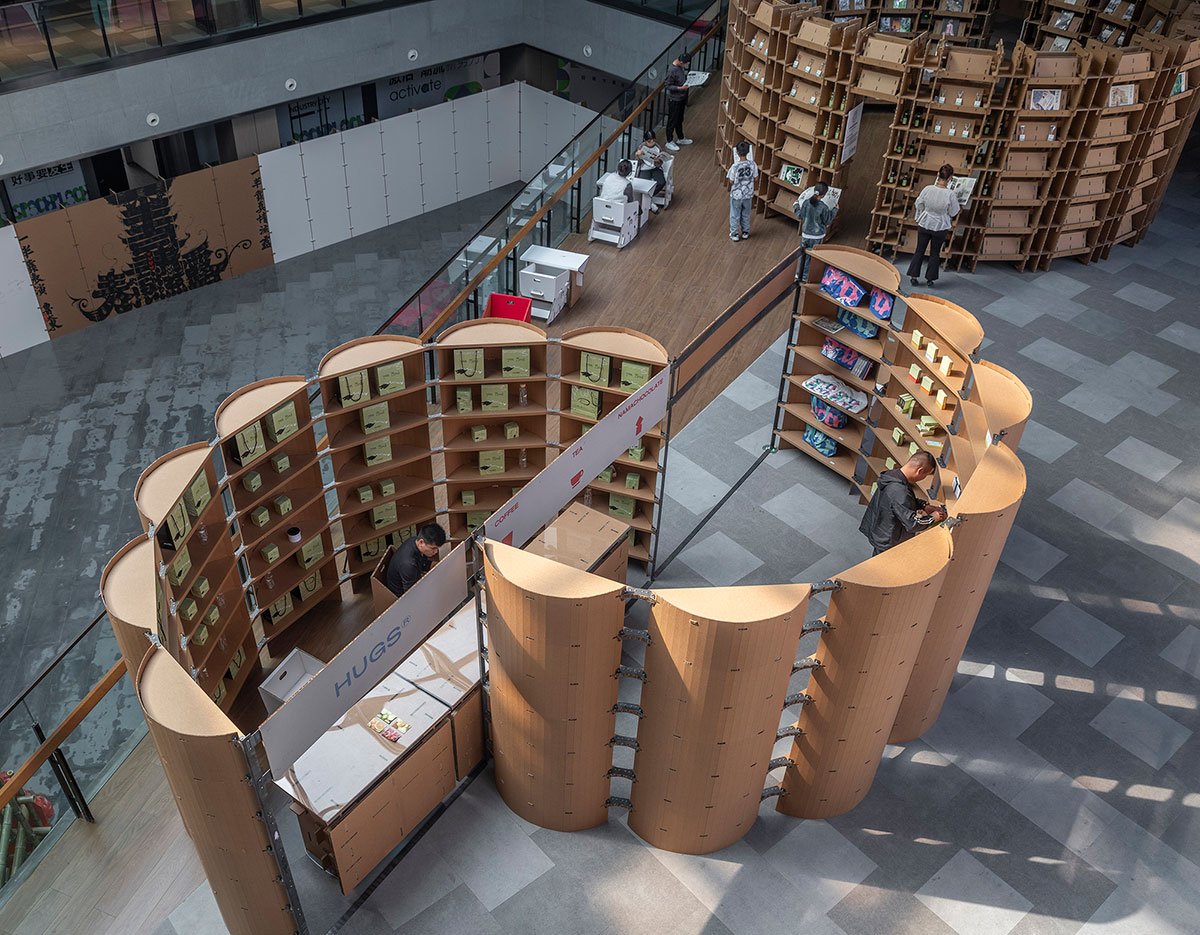 For example, the corrugated cardboard tables installed in Cardboard-formed Exhibition Space 1.0 were recycled by multiple public welfare organizations and were then assembled and reused, and the exhibition walls were repurchased and directly moved from the Power Station of Art in Shanghai to the Båt Odes to the Land in Zhengzhou Airport Economy Zone.
