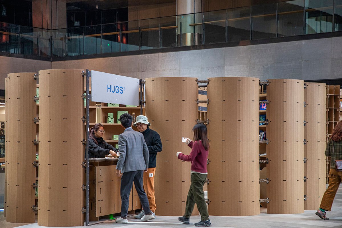 The public area requires functions like catering and reading to support the exhibition event. After an open recruitment campaign, local brands HUGS COFFEE and DOGHOOD settled in the public area of the exhibition venue, as the users of the “coffee house” and the “book house”. This is the background story of the two “paper houses”.
