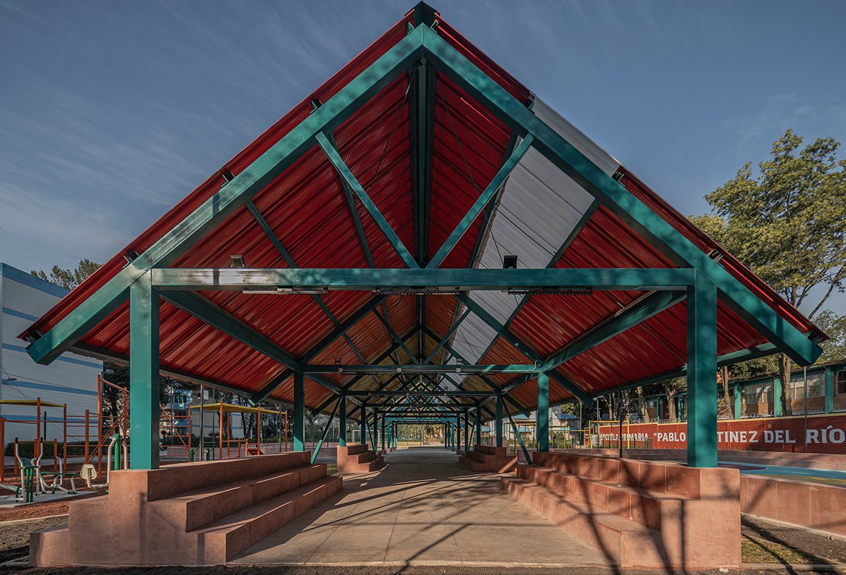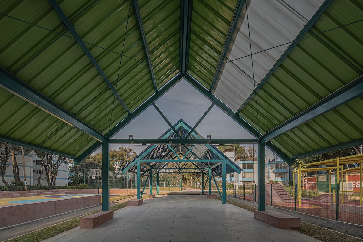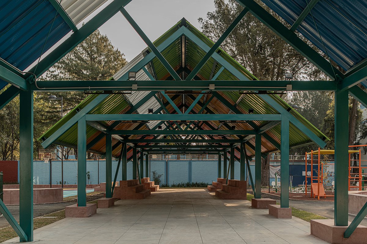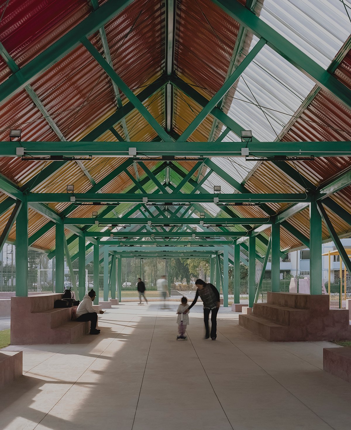 Almost fifty years after the construction of Mexico City’s largest housing complex, this intervention stands as an exemplary collaboration between the residents of Culhuacán, Infonavit, and the design team at AMASA Estudio. Through a series of seemingly simple architectural elements—structural steel profiles, pigmented concrete, and corrugated metal sheets—they have restored the social value of public space. A once-forgotten site has become a shared courtyard, now proudly cared for by its community.