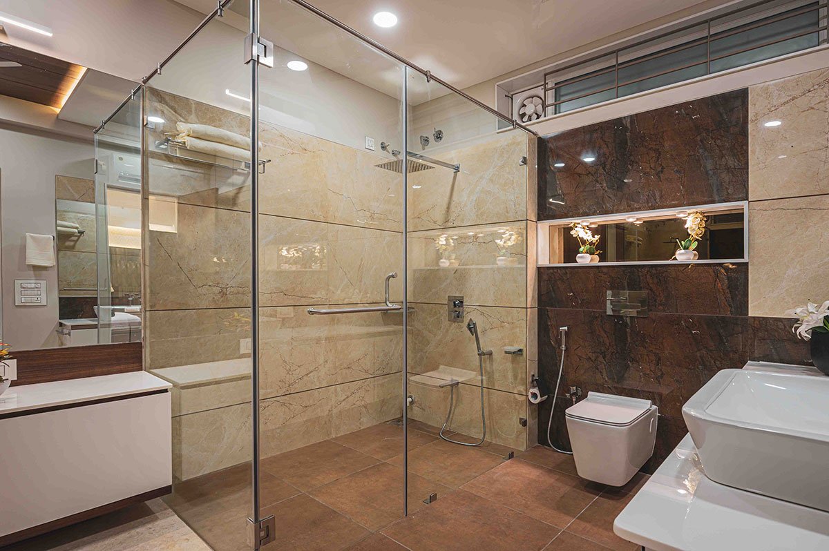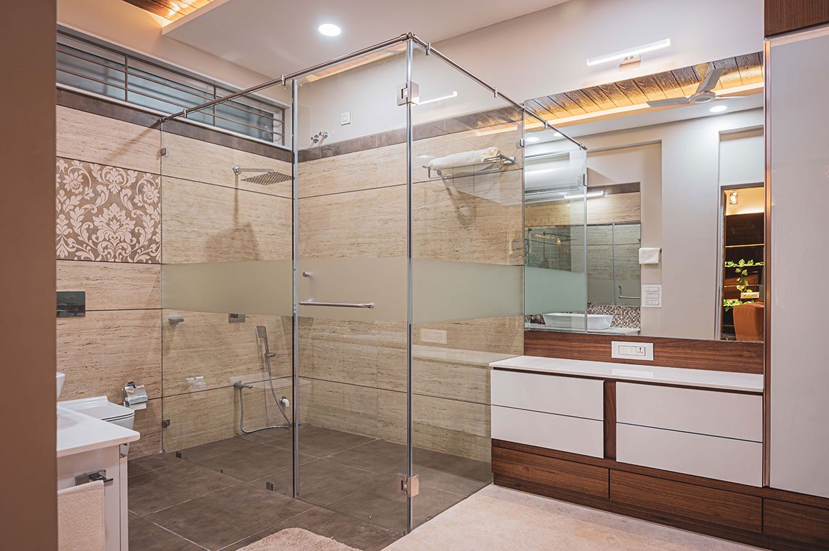 The materiality of the house is vibrant in every space. Combination of stone, wood, Italian marble for flooring across the house and the contemporary furniture pieces, add luxury and comfort to the spaces. This Urban Frame House is a unique combination of spatial planning; extensive spaces and expressive lights, which helped visualize the dreams of our client.
