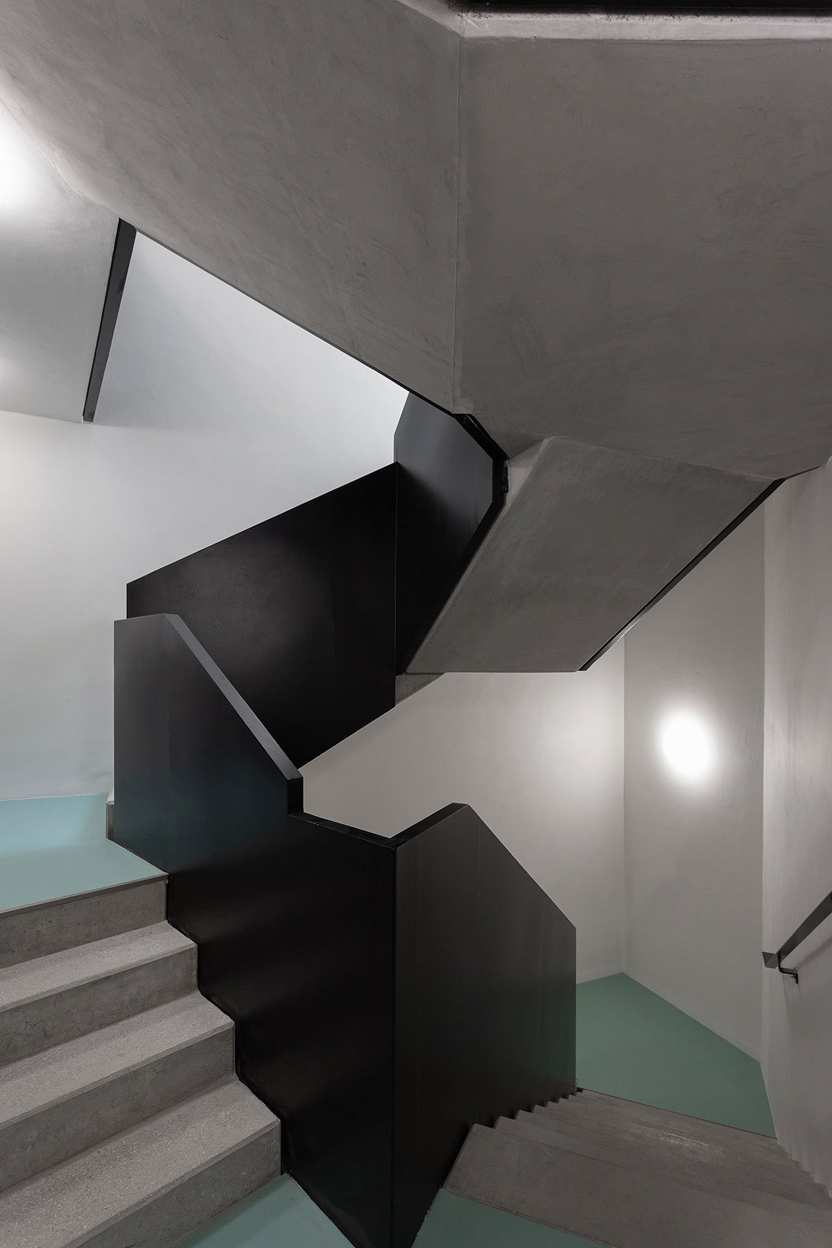 The Urban Infill Lofts are located in a former industrial district, which is currently undergoing a large transformation. As CHYBIK + KRISTOF’s design is the first substantial project southeast of the city center, the architects encourage further urban development in the existing area and emphasize, “In a complex urban structure, infills are a pragmatic solution for sustainable urban change. Promising existing plots and infrastructures need to be revisited and redesigned.”