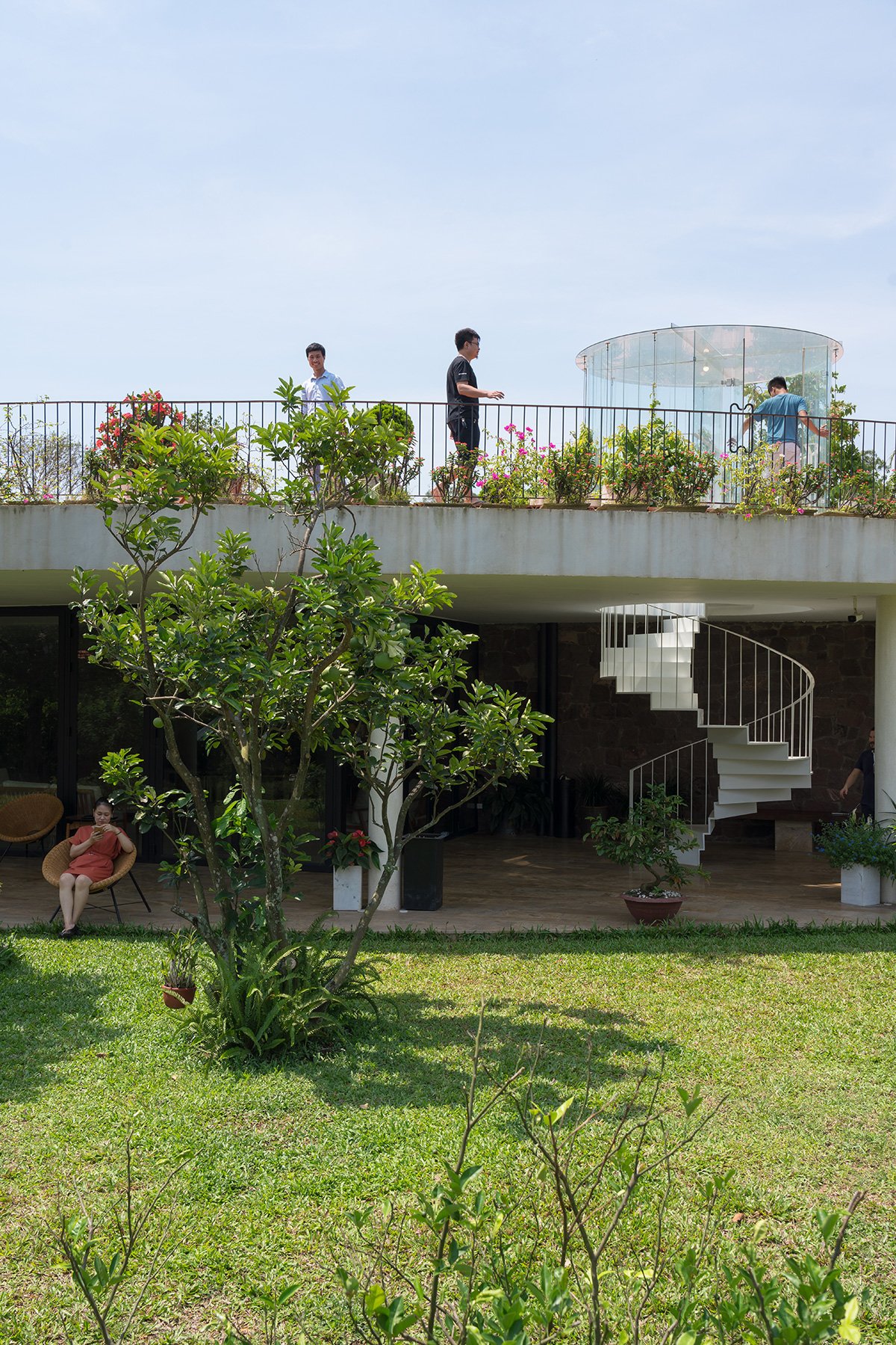 Out of the entire house overlooking the sky, the whole elliptical block became a miniature land containing a garden of Eden that everyone wanted to have on the roof. This special garden is not only the place for the children looking up for stars in the dreaming sky but also space to take place for all summer parties.