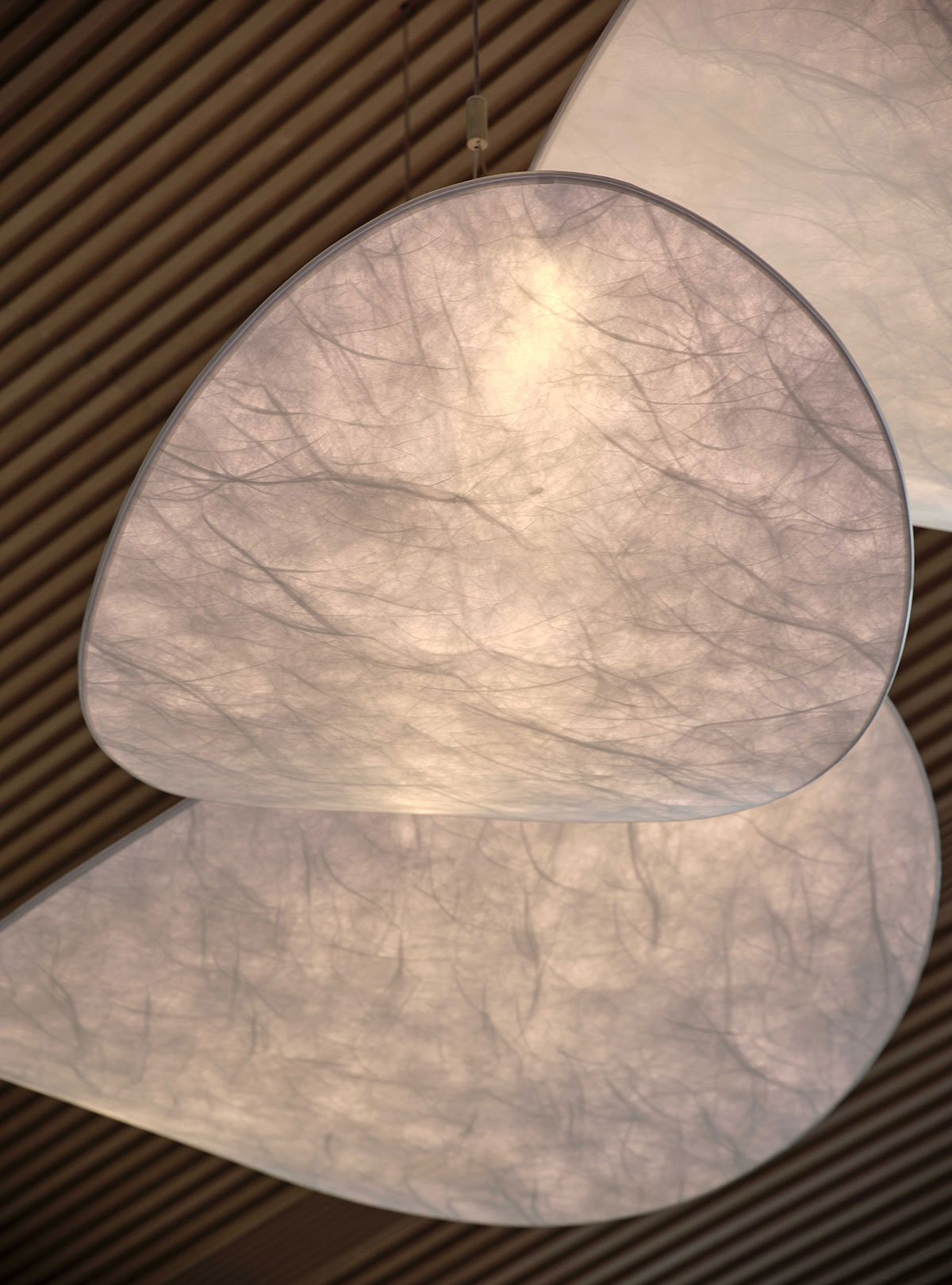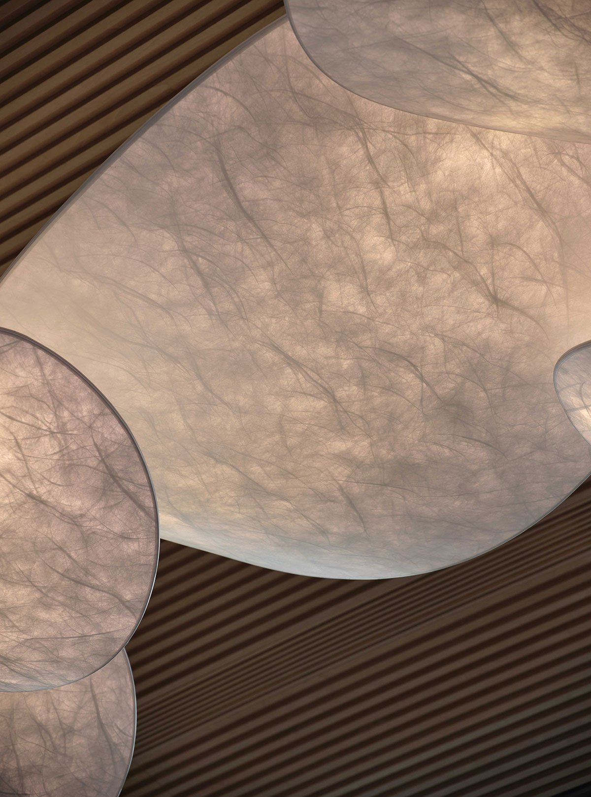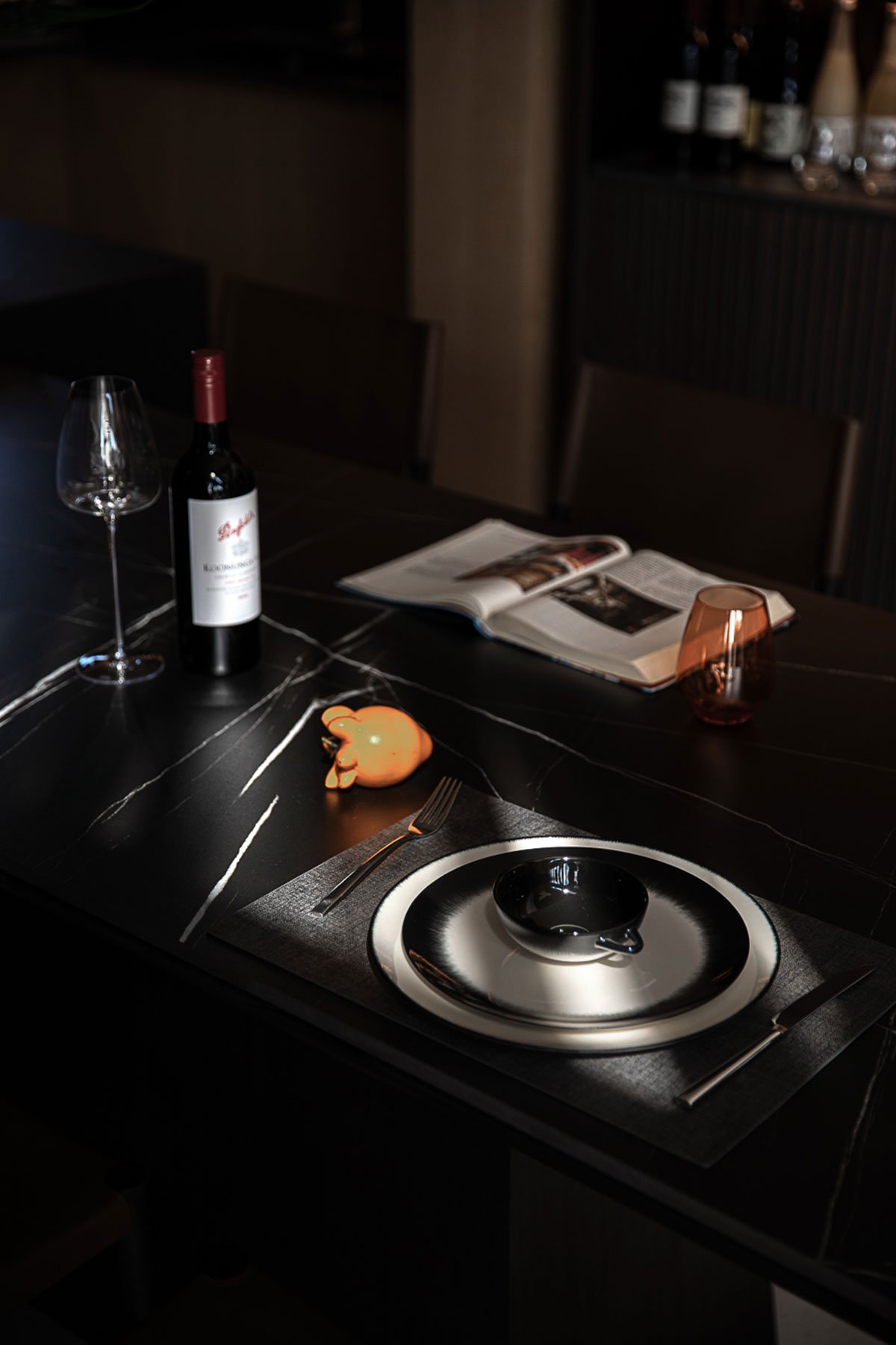 When the light falls on the main background wall above the fireplace, time is also imprinted. The stone sculpture wall and rice paper lamp, the hard and coarse grain and the soft and gentle materials are connected by the injected light, together creating a leisurely and comfortable place. The dining room and kitchen are integrated into the design, making the kitchen no longer an isolated, enclosed space but combining the island counter and dining table to expand into a social venue for communication, sharing and banquet hosting, giving the space more complexity and possibility.