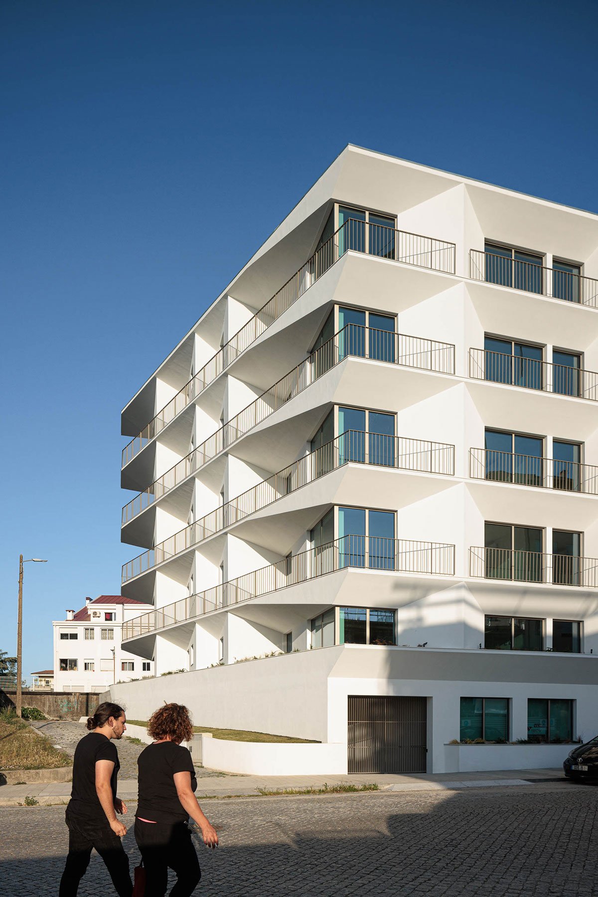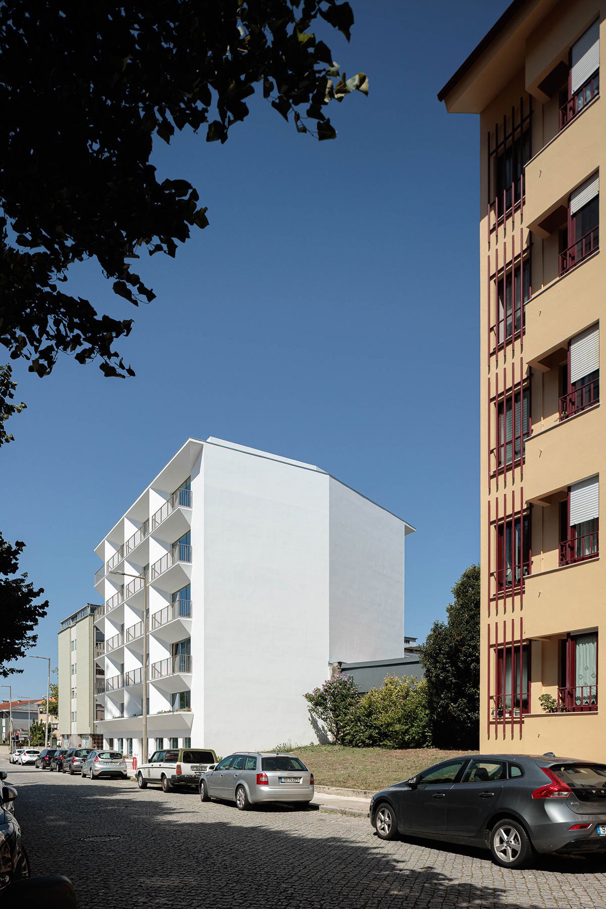 [Text as submitted by architect] The building is located in the city of Porto, Portugal, in a residential area near the city center. The construction stands out for its contemporary forms, whose distinctive composition results from the morphology of the plot, allowing the exploration of solid and void forms that create divisions between balconies.