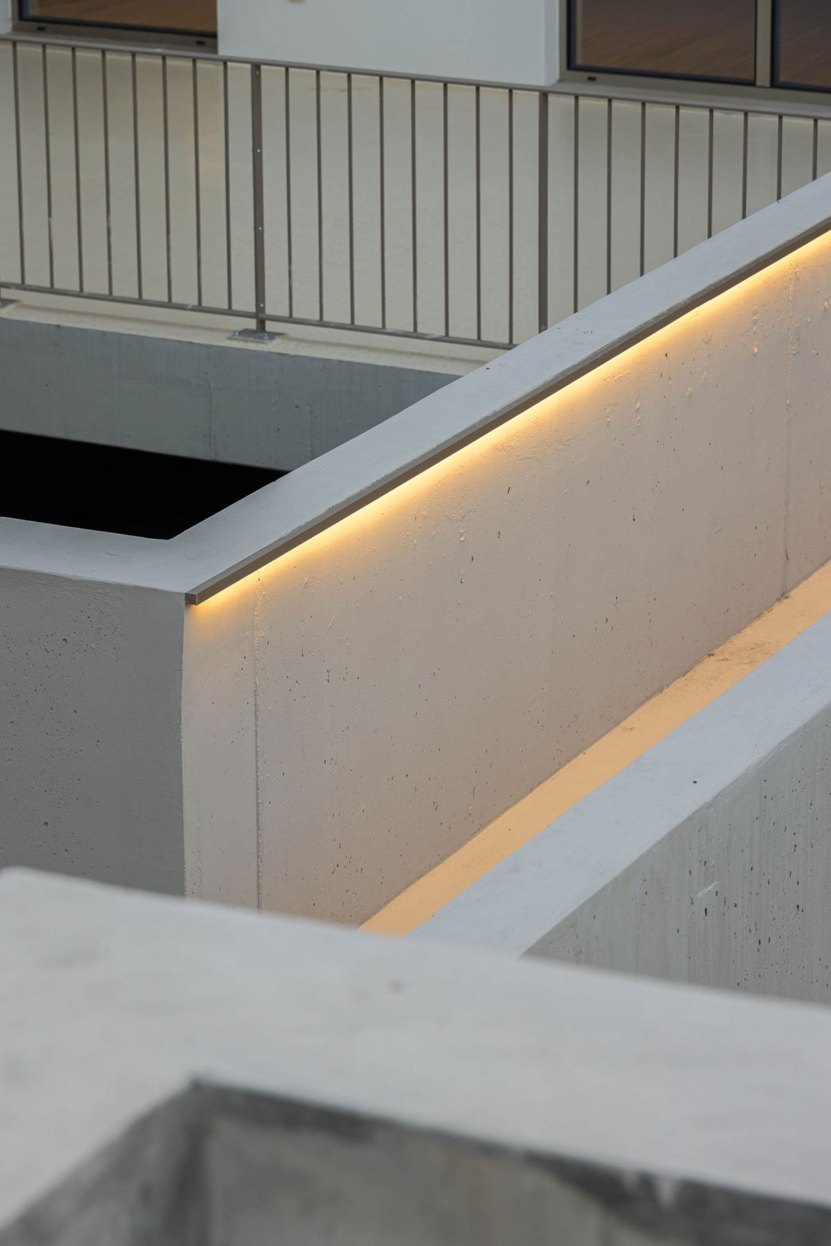 The courtyard is characterized by its steep topography, transformed into a set of levels that, although being a common area, allows for a more private use of its various outdoor spaces by the building’s residents. It mainly consists of green areas with surrounding vegetation.