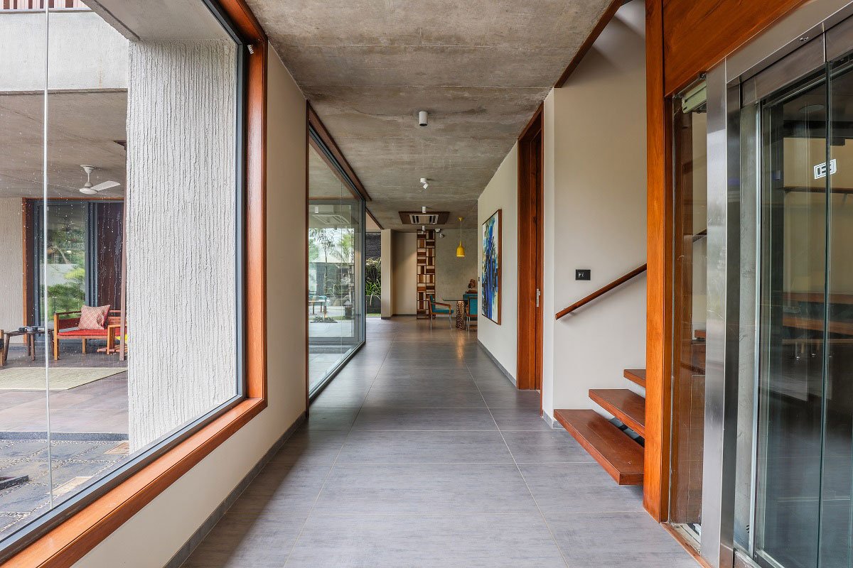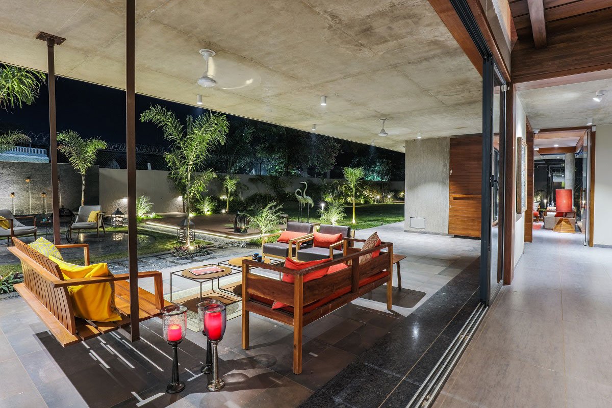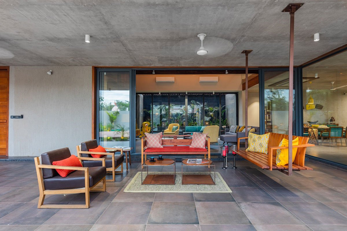 Excerpt: Verandah House, designed by Vipul Patel Architects, is a quintessential contemporary house with strict architectural language. his house is a right balance between the inner and outer space; wherein the constructed structure stands in equality with the landscaped area. The L-formation architectural planning is a result of the sun path and directions. The L-plan was done so that most of the areas open up towards North, which works best for the Indian climate.