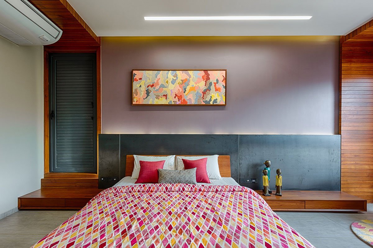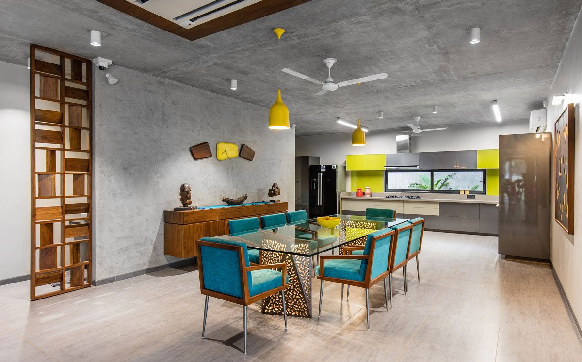 The interior of this house complements the architectural spaces too. The highlight of the house is the merging of the spaces with Nature, allowing the user to continuously connect and have a breath of fresh air. It will not feel like that you need to go out to witness some specific space as the house itself boats a variety of replenishing spaces itself perfect for every mood. The colours and furniture pieces in this house are vibrant, capturing the nature and vibes of the client. The interior designing is more intimate, which puts forth traits of a client’s personality to define their personal space.