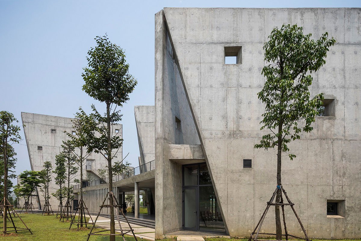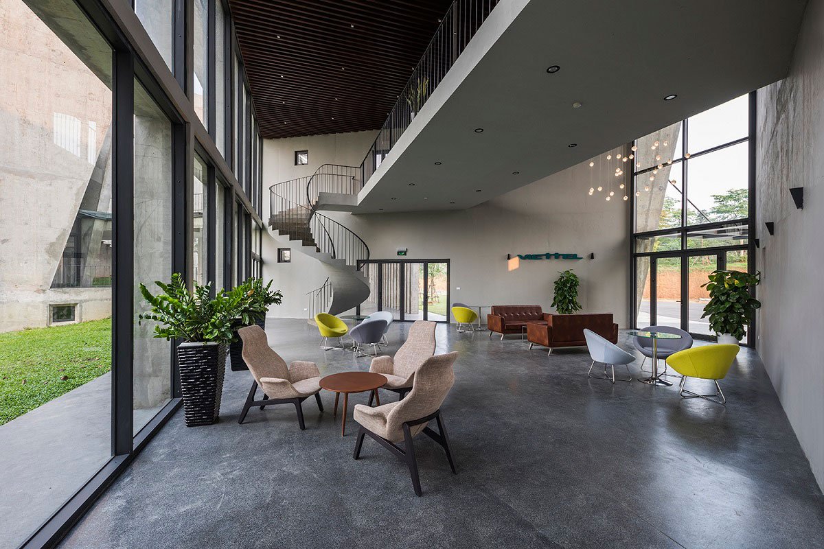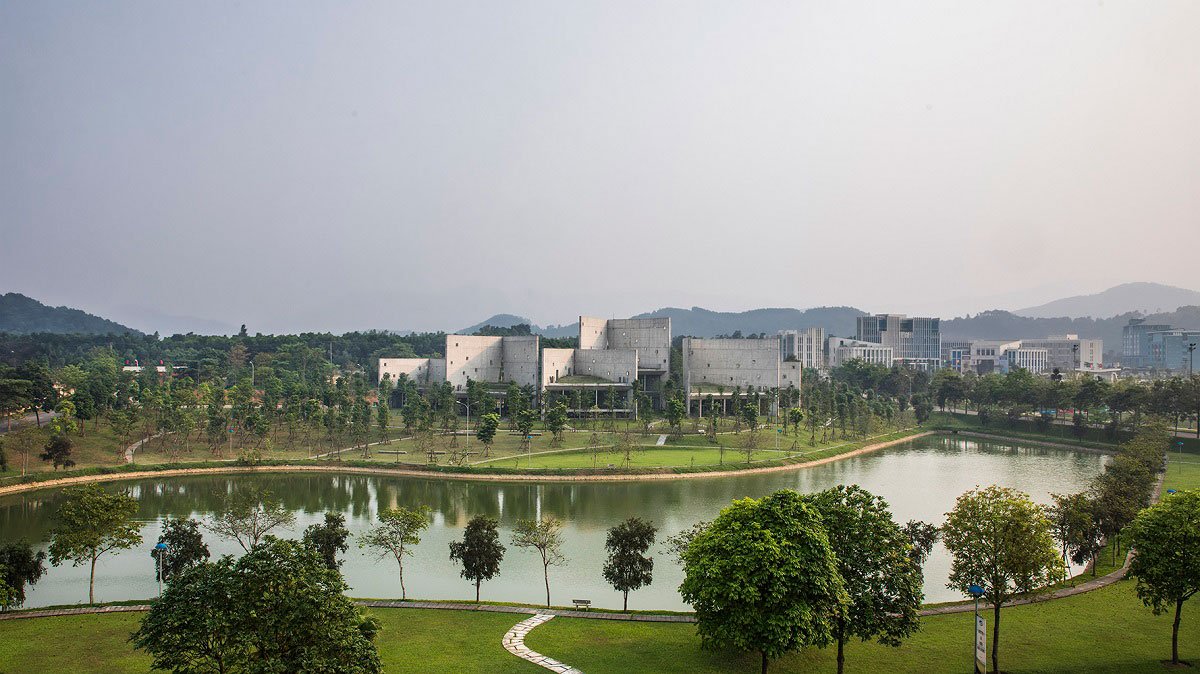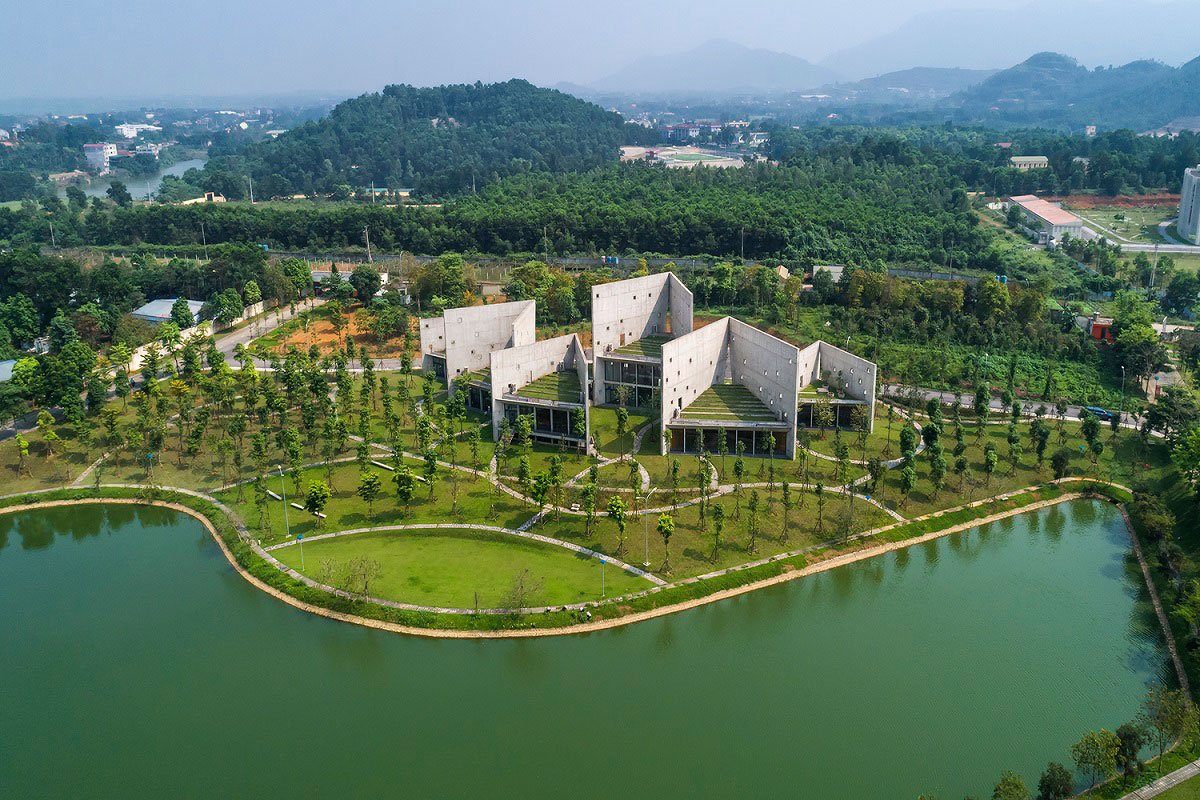 [Text as submitted by Architect] Locate on a light slope, besides a quiet lake and landscape abundant trees, Viettel Offsite Studio is inclusive 6 units; a welcoming reception, a dinning and four studios. It is located on the outskirts of Hanoi, around 30km and takes 40 minutes by car.