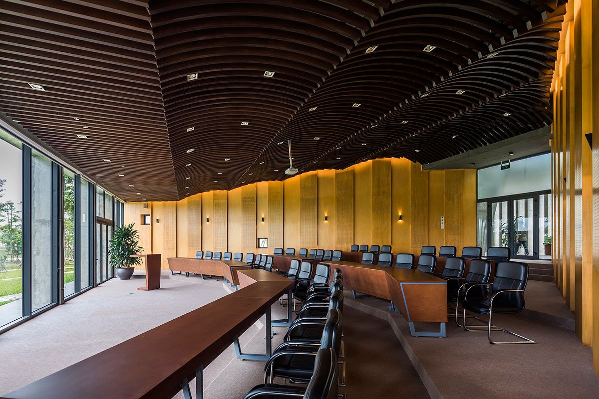 Excerpt: Viettel Offsite studio, designed by VTN Architects, is an institute located beside a quiet lake and landscape with abundant trees. Viettel Offsite Studio’s facility for meeting is prepared for their leaders to have boot camping meeting to make discussion and decision located at the corner of Viettel Academy’s campus where provide education for their engineers. These studios also supply an offsite short-term working place for the leaders, after getting away from busy cities and miscellaneous.