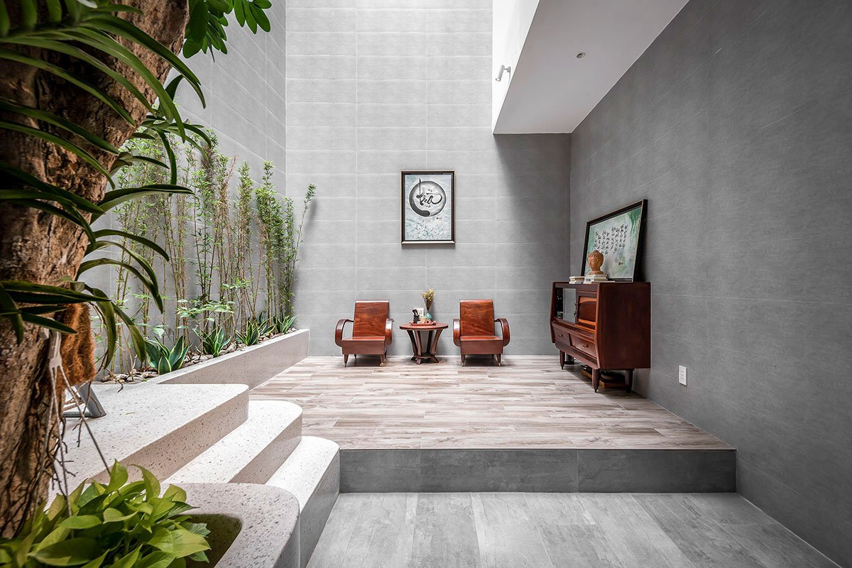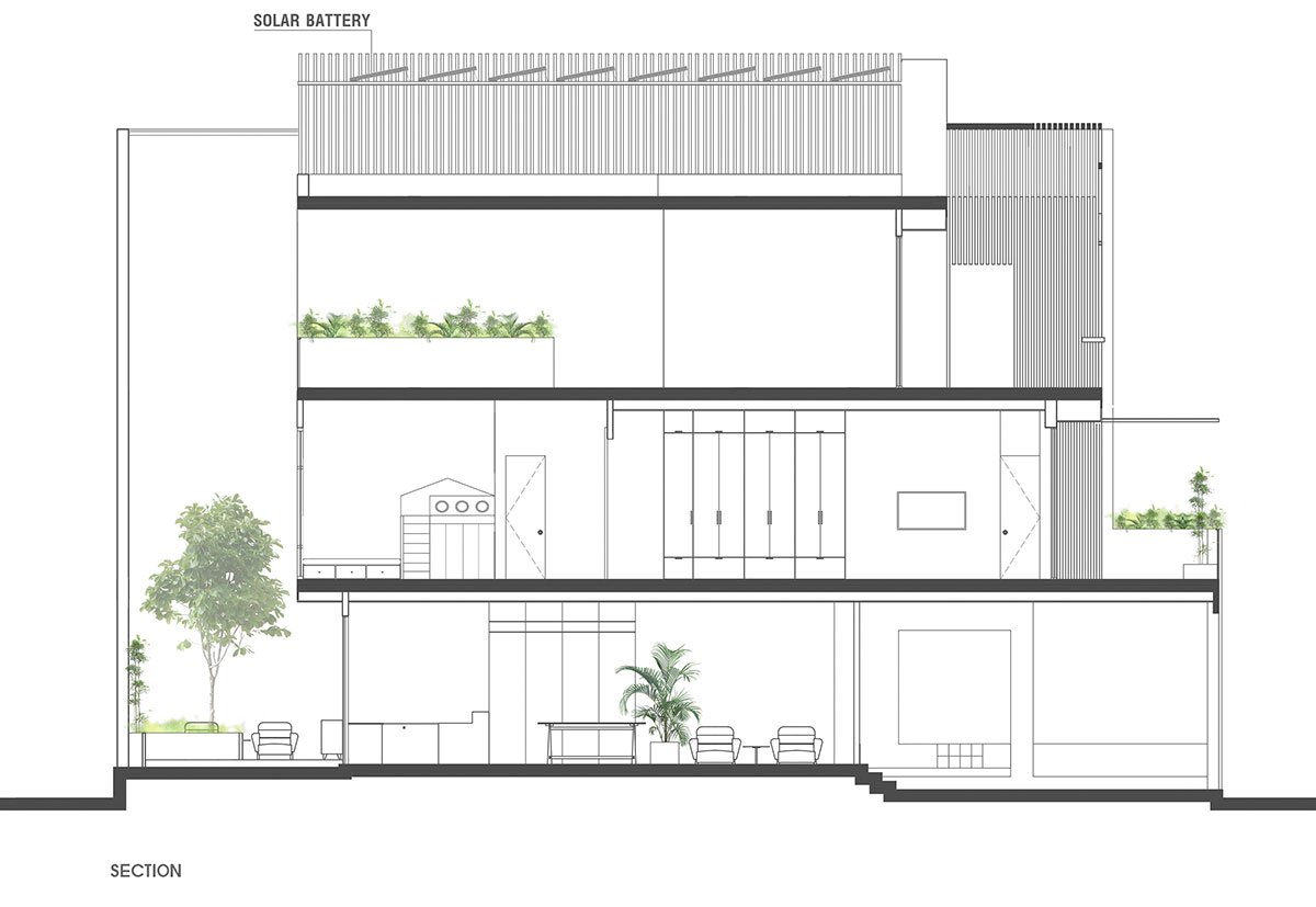 Villa City Project is located in District 7, Ho Chi Minh City, Vietnam. House for husband and wife and 2 sons. With an area of 117m2 and a limited investment budget, we consider to organize a reasonable living, working, resting space and relieve the inhibitory mentality when being restricted from leaving the house when the situation can have long-term social isolation. The narrowing of the living room, eliminating bedrooms, making bunk beds for the children to share a room leads to plenty of space to plant trees, swimming pools and tree houses for the babies to play. Helps to release energy for babies.