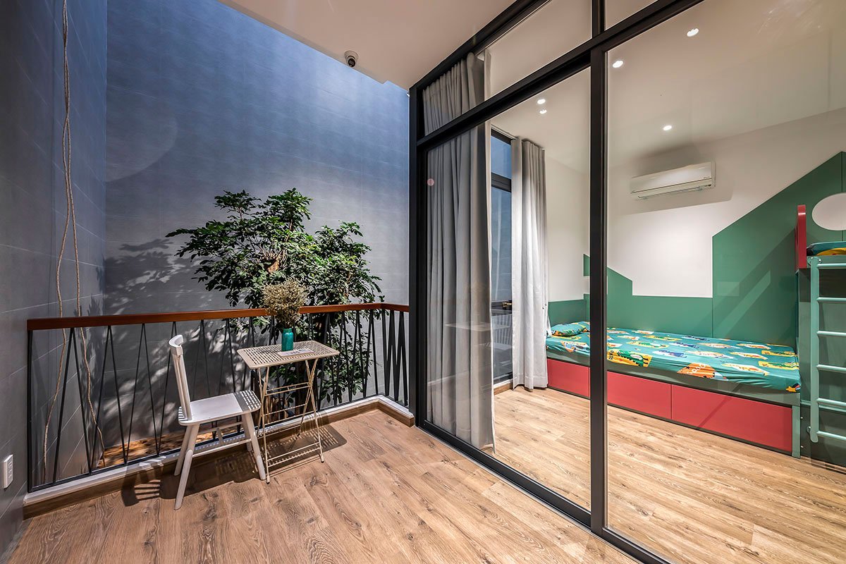 The children’s bedroom and parent bedroom have connecting doors, and connected to the balcony to create a connected space long enough for the children to run comfortably, the bedroom is designed with a large glass wall overlooking the greenery and Get natural light from the floor pockets to make the bedroom airy, freeing the vision.