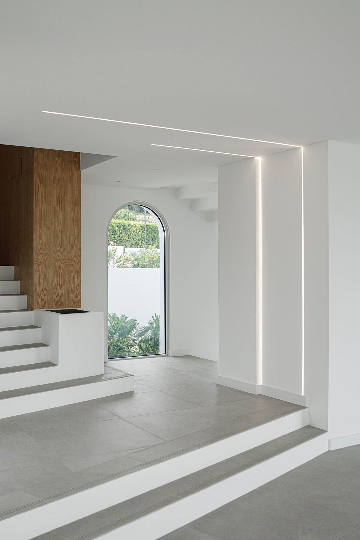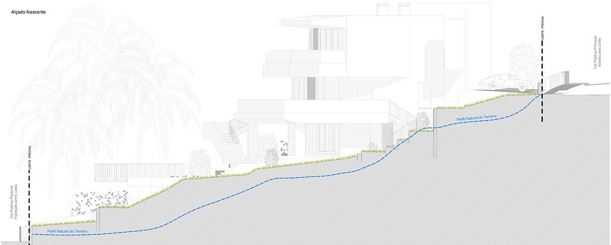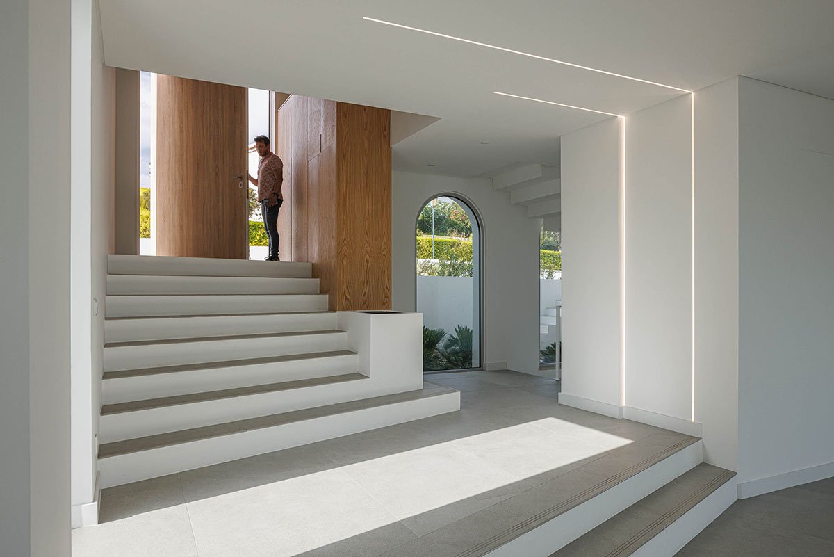 This difference in levels was essential in the development of the proposal. The living areas are developed to the south, while the areas of circulation are concentrated on the north side. Villa Fortaleza has three floors, with large terraces and stunning landscaping. The challenge of ensuring that all interior and exterior spaces can take in the magnificent sea views was largely successful.