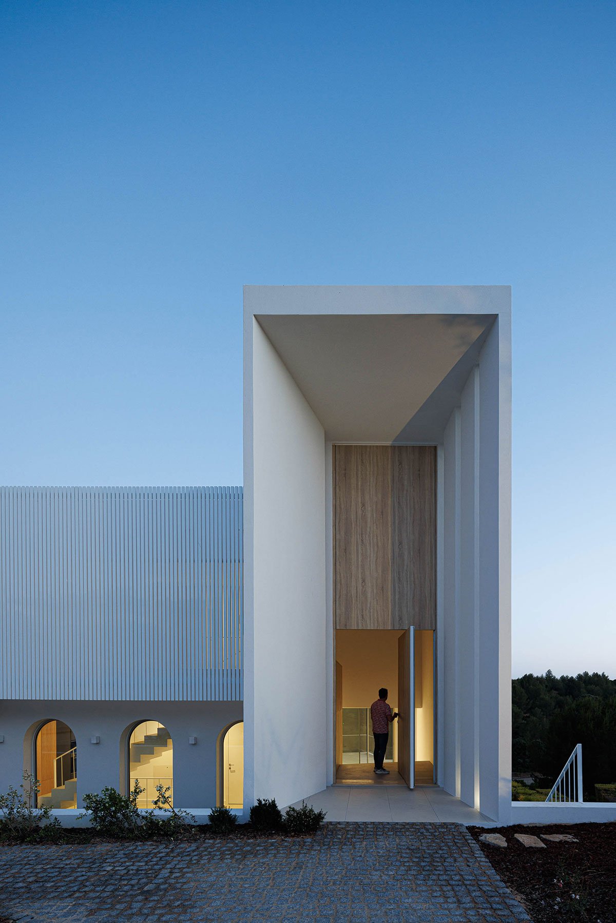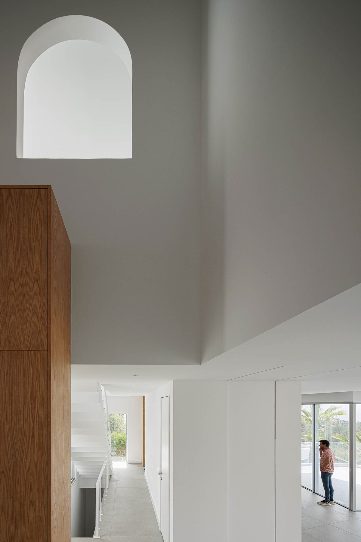 Excerpt: Villa Fortaleza, designed by Vieira de Moura Architects, features a dual identity shaped by its unique location. The north façade showcases a minimalist design with a smaller volume to ensure privacy, while the south façade has a more intricate design and larger volumetry. The residence’s bi-directional geometry and enhanced solar orientation create a balanced yet dynamic feel, enhancing the aesthetic of the expansive front.