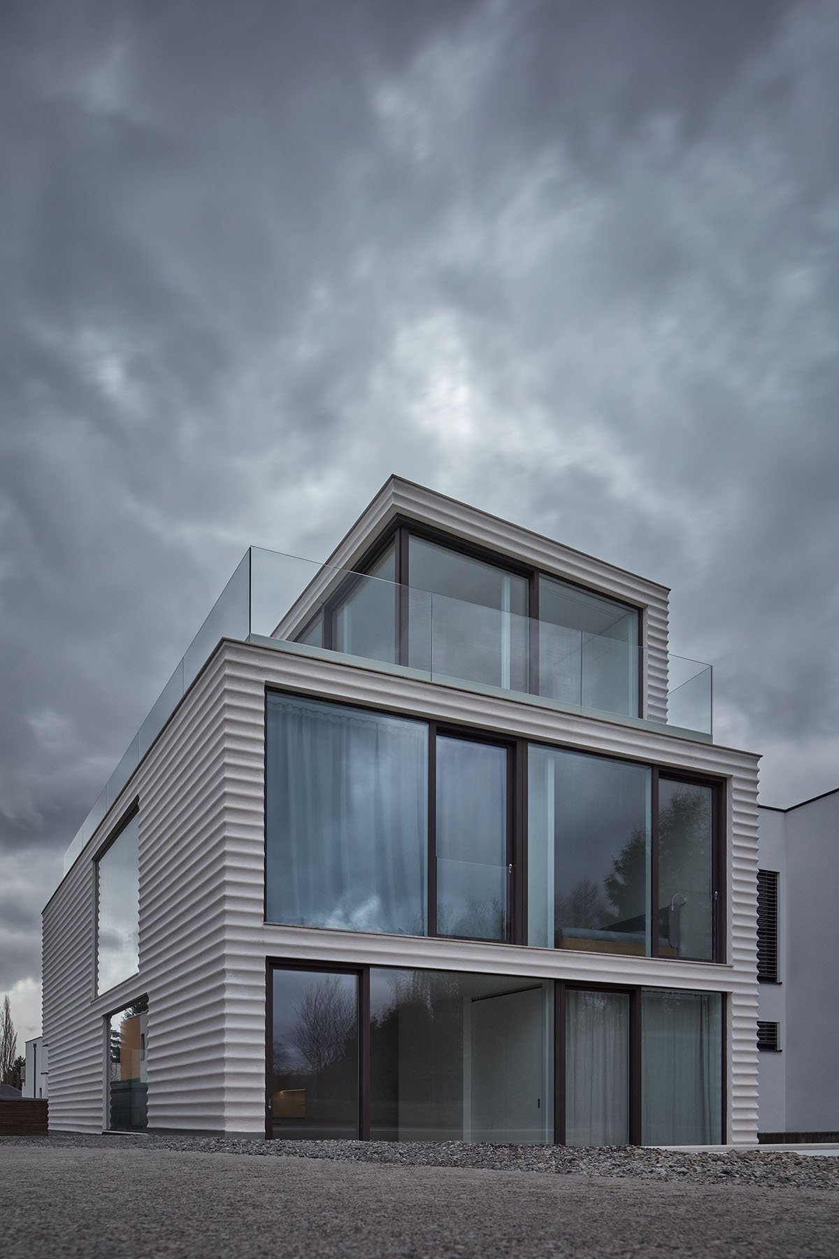 Excerpt: Villa in Percvhtoldsdorf, designed by Jan Proksa – Architect, maximizes the volume of a narrow plot of land to create a modern living space for a two-generation family. The outlines and the façade of the house are reminiscent of the unique and traditional craftwork of Viennese houses. From the intimate entrance to the large open plan living space, this interaction between the perpendicular and the oblique defines a certain perception that pervades the experience of the structure.