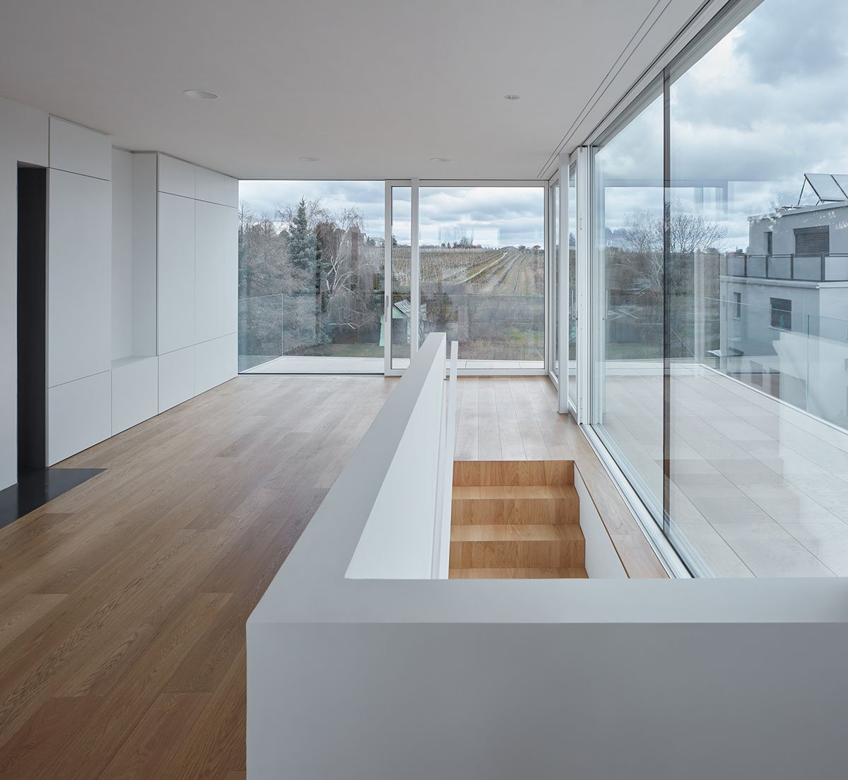 [Text as submitted by architect] Imagining a villa, one pictures a sprawling complex of buildings and land, echoing dynastic opulence. For this villa commission in a quiet village outside of Vienna, Austria, I was challenged with maximizing the volume of a difficult and narrow plot of land in order to create a modern living space for a two-generation family.