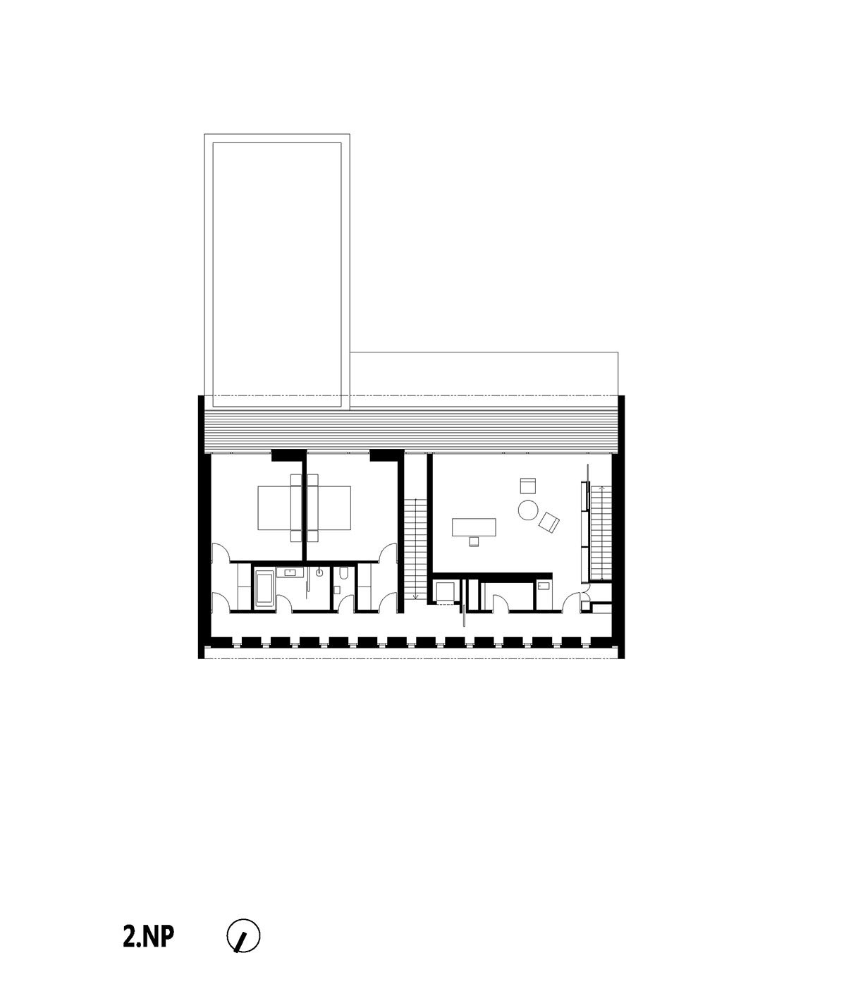 The entire environment is calmed no matter the heterogeneous character of individual houses. The plot size of 1,500 m2 was somewhat restrictive to the design linked to the Průhonice Land Use Regulation Plan specifying the maximum rate of development of 20%. Due to this restriction, we had to position the swimming pool in the basement and, employing more complicated landscaping of the garden, develop such a design establishing an important contact with the garden. The positive feature of the park was grown, three of which the majority could be preserved and reused for the new project.