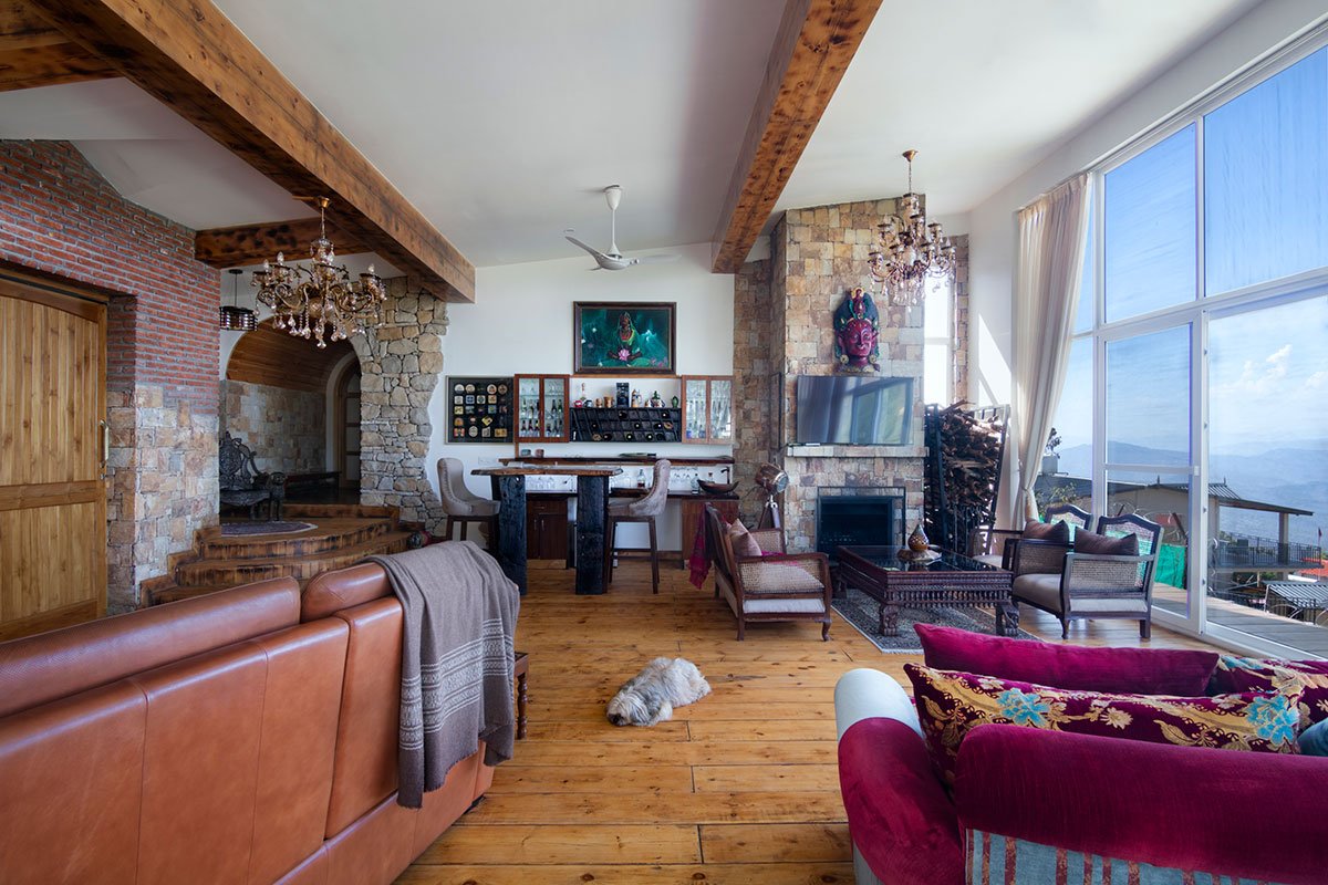 [Text as submitted by architect] Overlooking the mighty Garhwal Himalayas lies Villa Serene, near the town of Ranikhet. This contemporary property captures the essence of avant-garde living in a traditional mountain setting – a quiet reflection of modern lifestyle steeped in traditional values. Inspired from simple forms and native bearings, it seamlessly blends modern design elements with a rustic yet sophisticated texture palette.