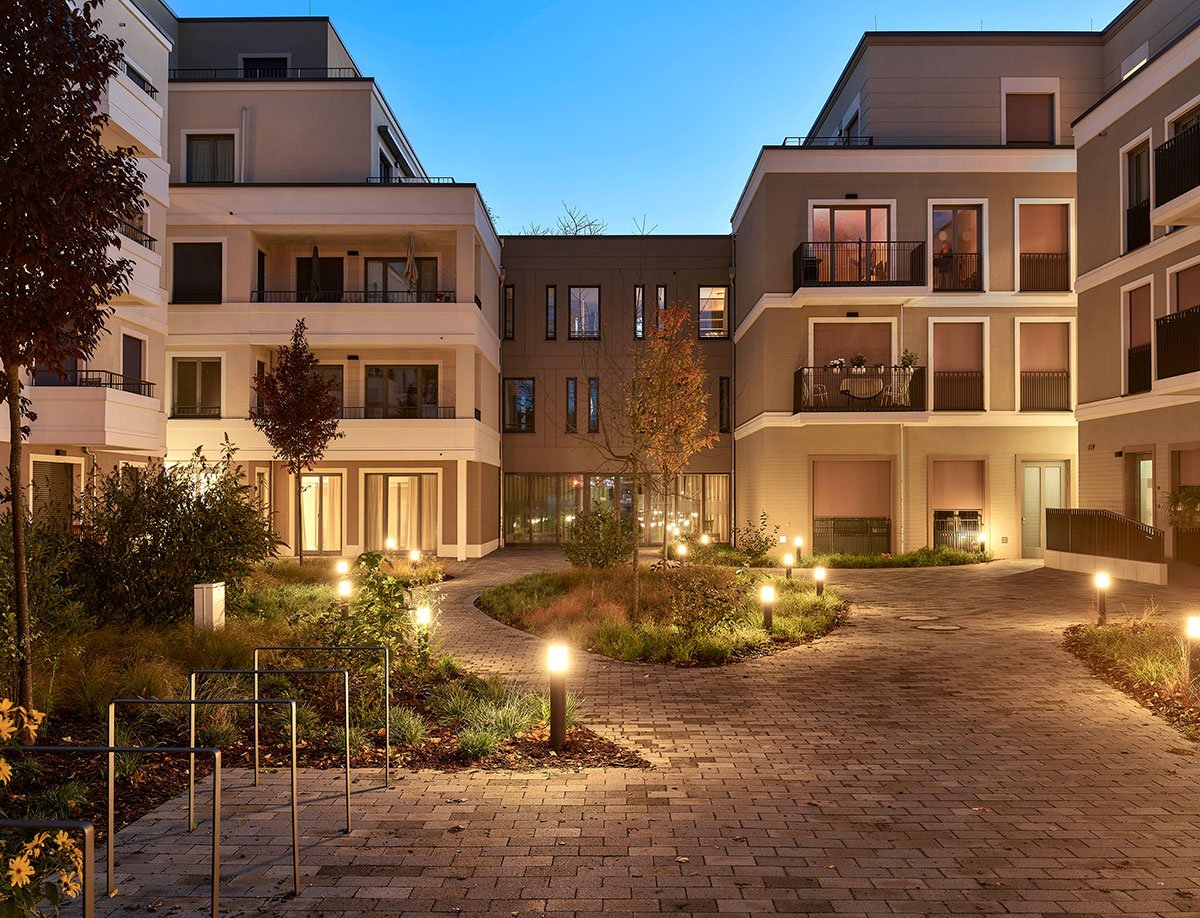 In addition to the senior-friendly apartments, a wide range of services were created for the residents, such as a spacious reception with concierge, gastronomy, rooms for fitness and wellness including a swimming pool as well as communal rooms in the U-shaped building at the Riviera Hall. An outpatient assisted living community and a day care centre in the buildings opposite round off the neighboorhood’s offerings.