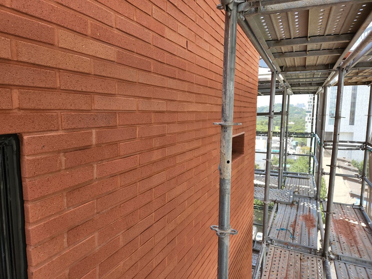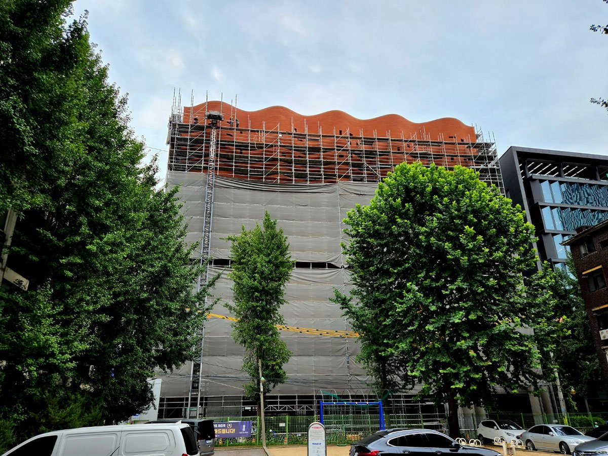 The reproduction of drapery in stone sculpture, as researched during the design process of the Administrative Building for the Textilverband, has always represented a captivating paradox. In this case, the traditional brick masonry system offered great capacity to depict and adapt to the desired curve. Brick construction has a long historical tradition in Seoul.