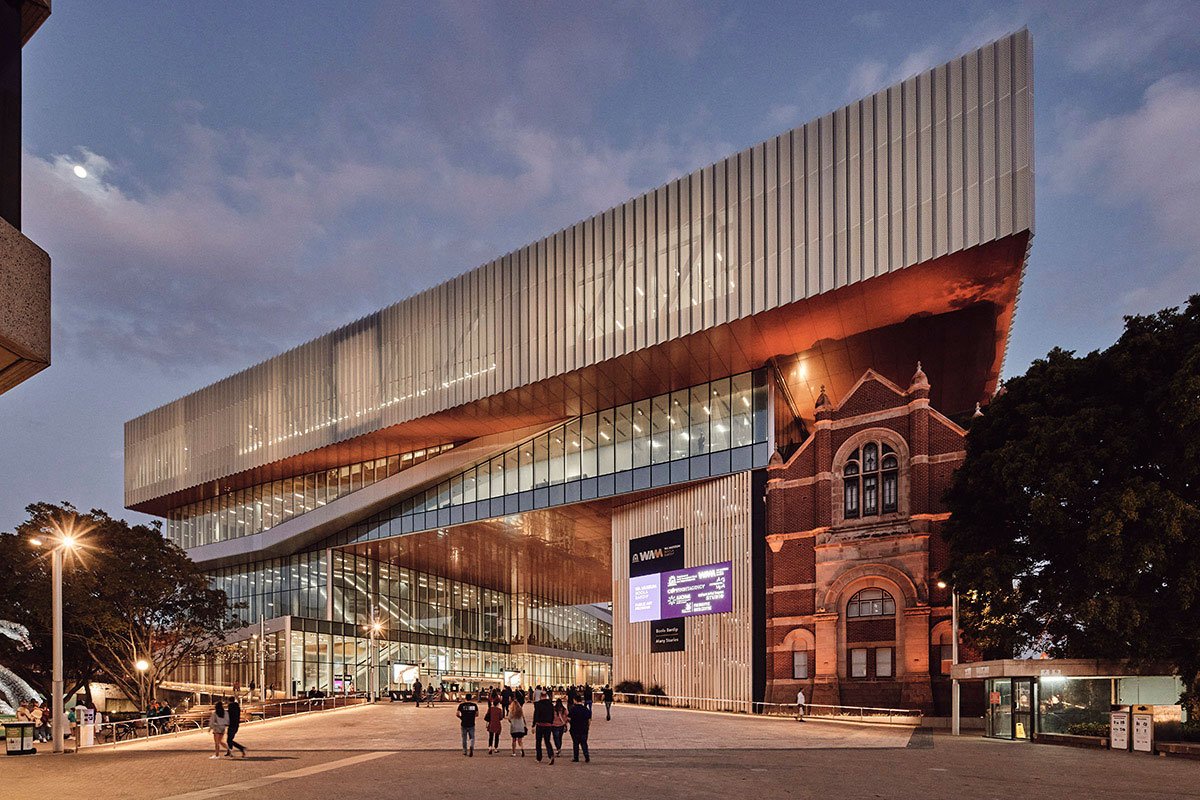 In the Museum, heritage and contemporary structures complement each other. Preserved and revitalised buildings on site include the Old Gaol dating from the mid-19th Century, the Jubilee Building built in 1899, the original Art Gallery built in 1908 and Hackett Hall—the State Library’s reading room built in 1913. New volumes wrap around these heritage buildings to create two core elements of the Museum: two intersecting circulation loops that offer a variety of curatorial possibilities, and a ‘City Room’—a public space at the Museum’s centre for cultural programs and daily activities.