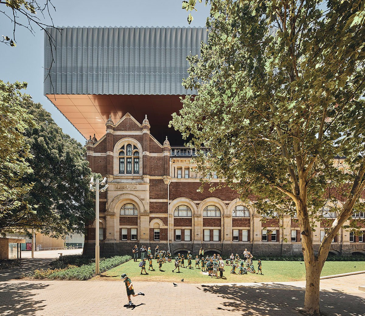[Text as submitted by architect] Located in Perth’s Cultural Centre, the WA Museum Boola Bardip provides spaces for exhibitions and events, and new retail and dining opportunities for the former museum, showcasing the State’s natural and cultural collections. Formed with renovated heritage-listed buildings and new volumes, the Museum has been conceived as a framework to share the diverse stories of Western Australia—a State characterised by its extraordinary people and places and home to the oldest continuous culture on earth, an increasingly diverse, multicultural population, and a world biodiversity hotspot.