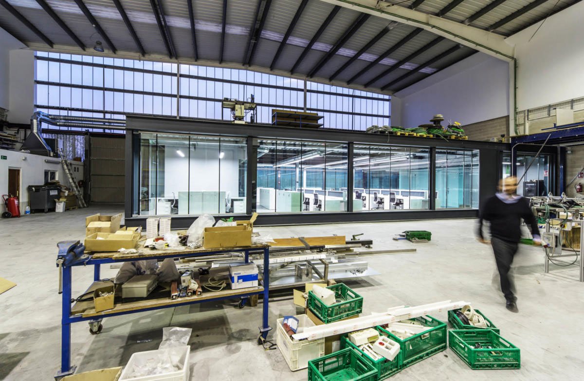 Rehabilitating an old and abandoned warehouse, adapting it to new high-tech machines, operators and responding to the requirements of more light, space and air was the challenge that our studio had to face. It meant transforming a banal warehouse from a forgotten industrial estate into a new installation in which clarity and luminosity prevail. Our claim – and proposal to the customer – was to reconvert the traditional industrial space by providing a new atmosphere that seeks the benefit of the people working inside.