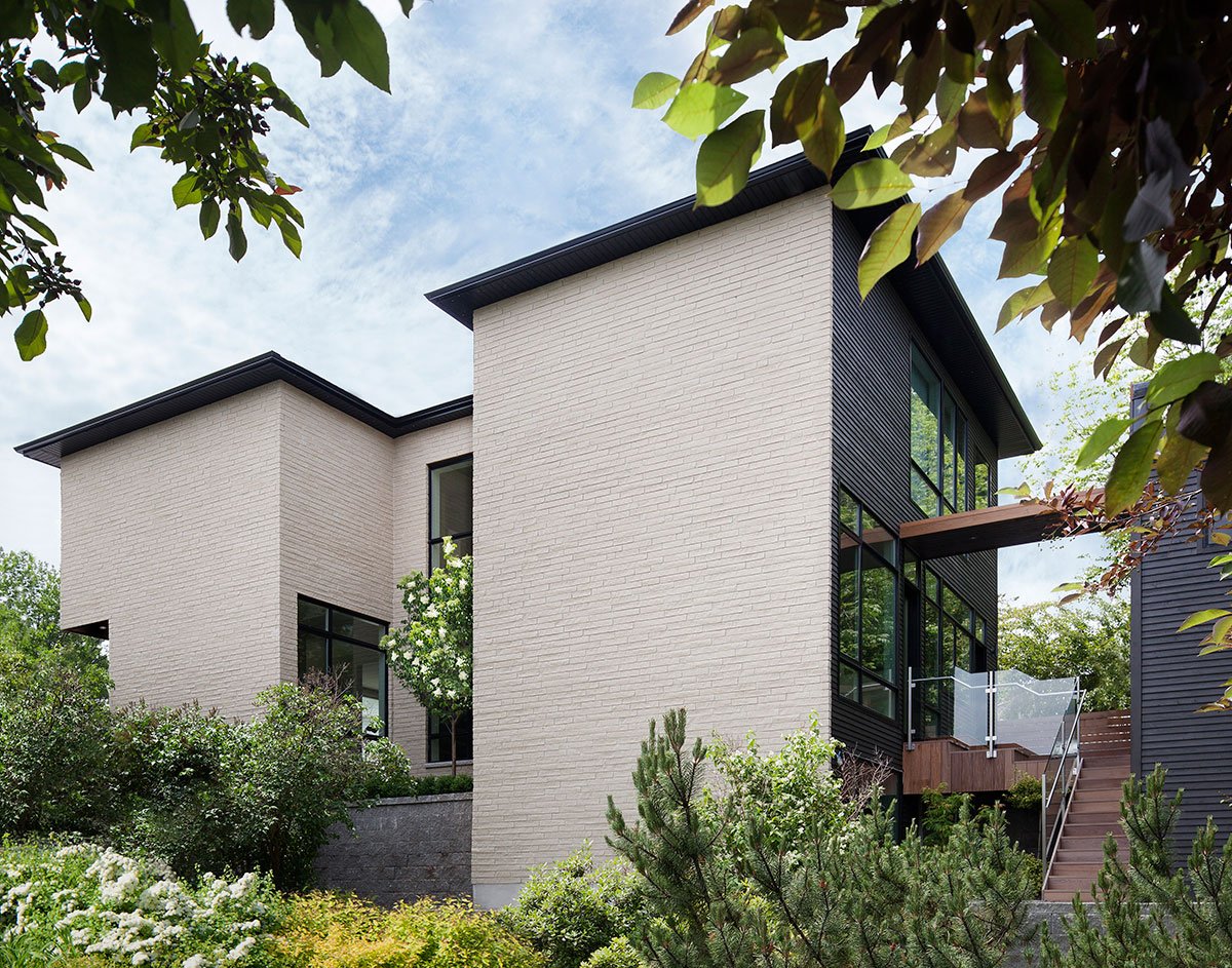 [Text as submitted by architect] Design Challenge: The site for this home was a narrow lot in a downtown neighborhood, which carried with it extensive code limitations on side windows. A further challenge was negotiating the difference in grade between the two neighbouring lots: an already steeply sloping site, the neighbours to the West raised their rear yard an additional 1.5 m, ultimately creating a difference in neighbouring lot heights of approximately 2.5 m.