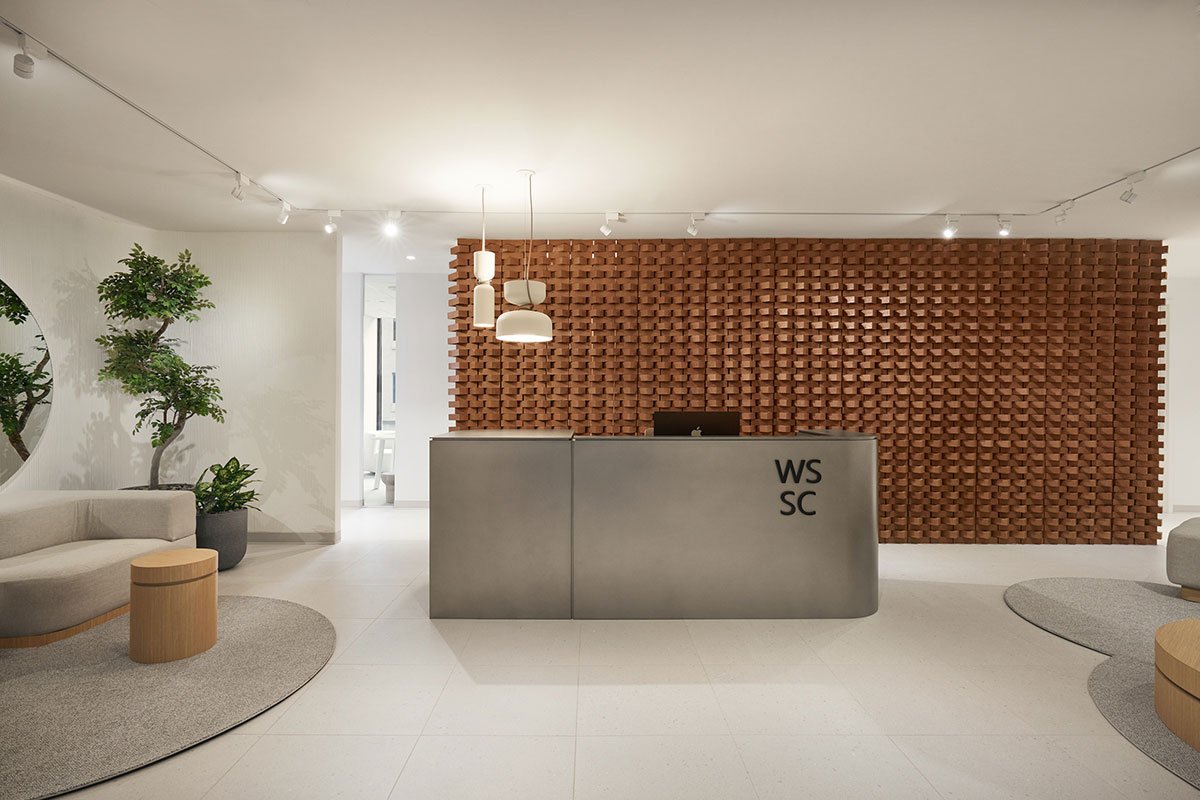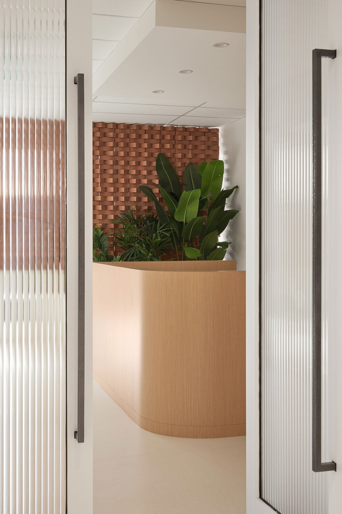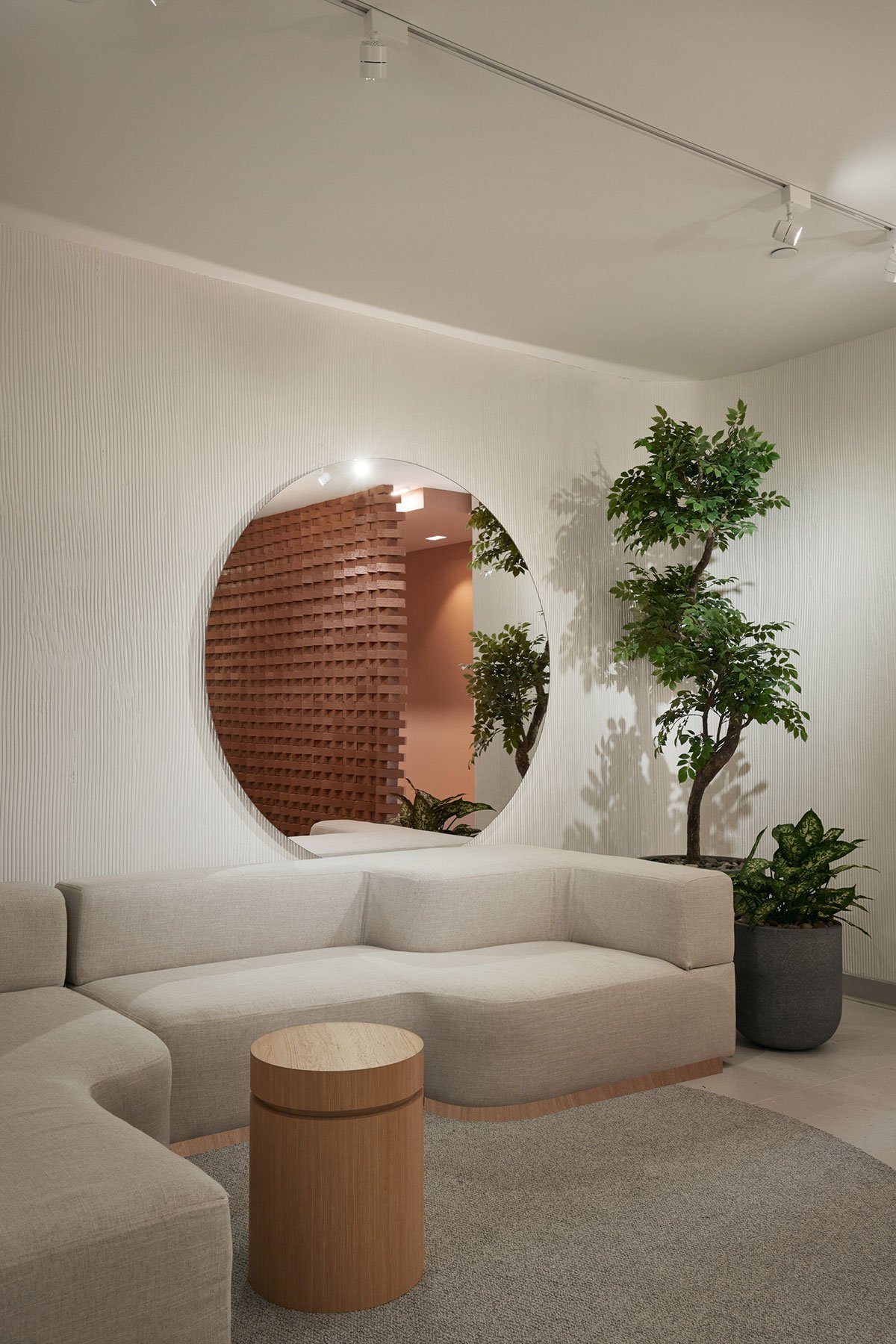 Inspired by the human body: The spaces in the administrative area, including the reception, consultation rooms, and offices, are directly inspired by the aesthetics and softness of the human body, both in its curves, colors, and textures, and in its imperfections.