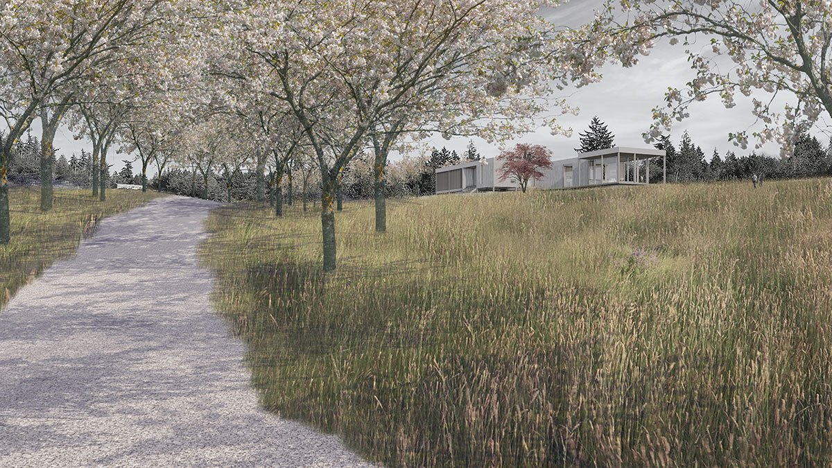 [Text as submitted by architect] Floating above a meadow, Whidbey Uparati seeks to minimize visual and physical impact on the natural landscape by blending into the site rather than asserting itself upon it. Upon approach, the meadow vegetation and flowering trees surround a winding path up a steady slope to the house. The house is a place for family bonding, meditation, and uparati – “stillness” in sanskrit.