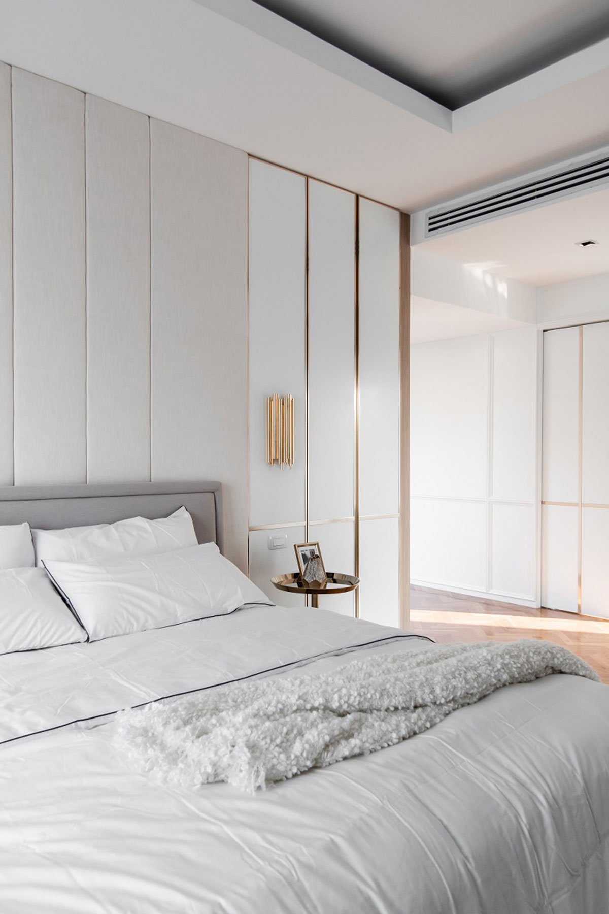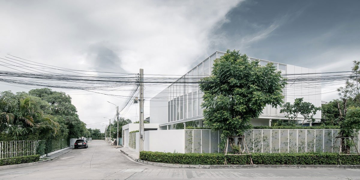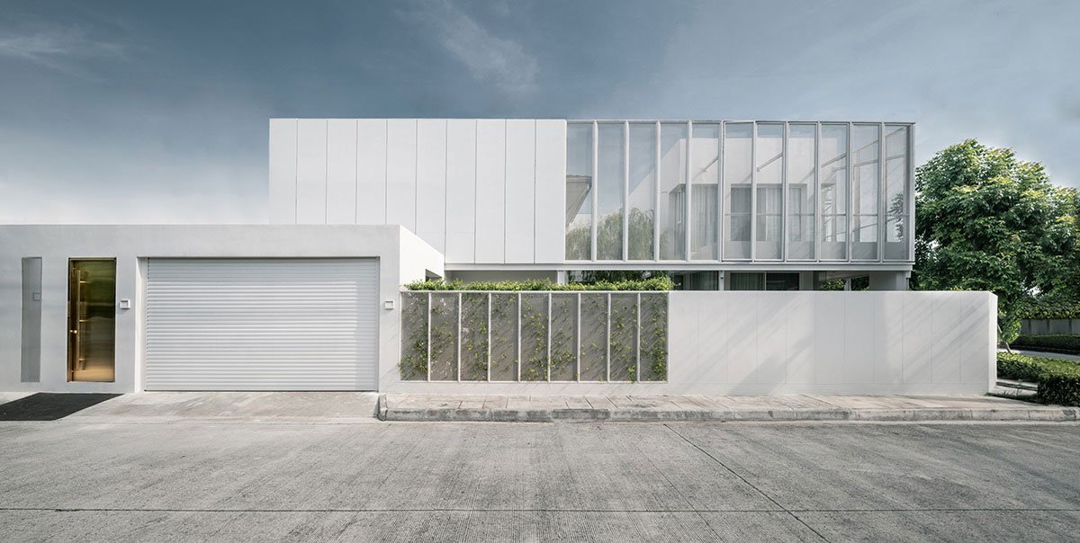 “White Canvas” is the designing concept we brought up as the modern minimalist white planes with a composition of textures which are steel mesh, aluminum composite panels, and simple paint finish wall. Steel mesh is the essential material we selected on behalf of the owner’s family business is a steel mesh distributor, creating solid and void connecting to interior space for privacy and ventilation. By combining two buildings with the horizontal façade on the 2nd floor and the fence on the ground floor, the center courtyard was created between the buildings making visual linkage to the landscape design and using as a main function terrace for the family. Lastly, the golden polished stainless-steel entrance door was installed for an accent regarding the interior design color scheme.