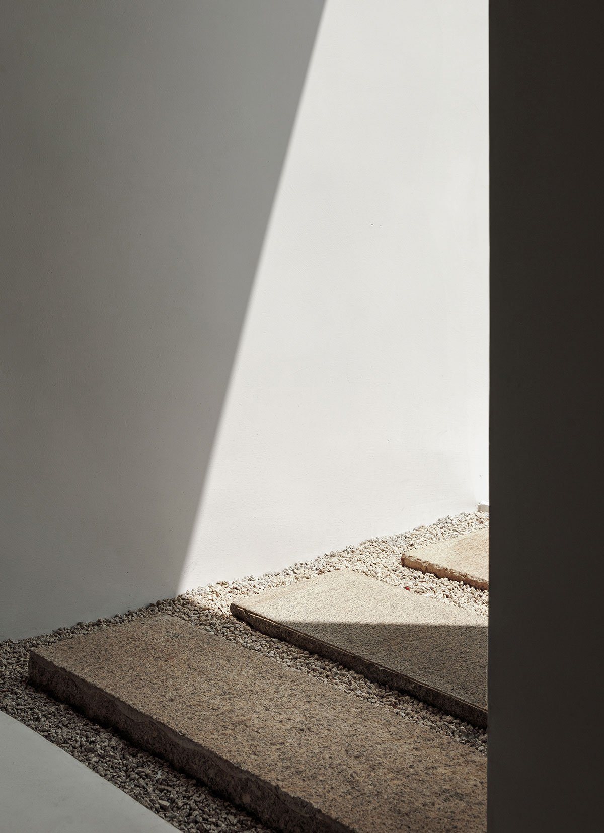 02 Circular Circulation: The gray space at the entrance, combined with the stepping stones, slows the pace of entry, allowing visitors to pause and gather themselves before fully entering. This area functions as a transitional space, intentionally creating a separation between the interior and exterior themes. As a result, it enhances both the privacy and the sense of layering within the space.